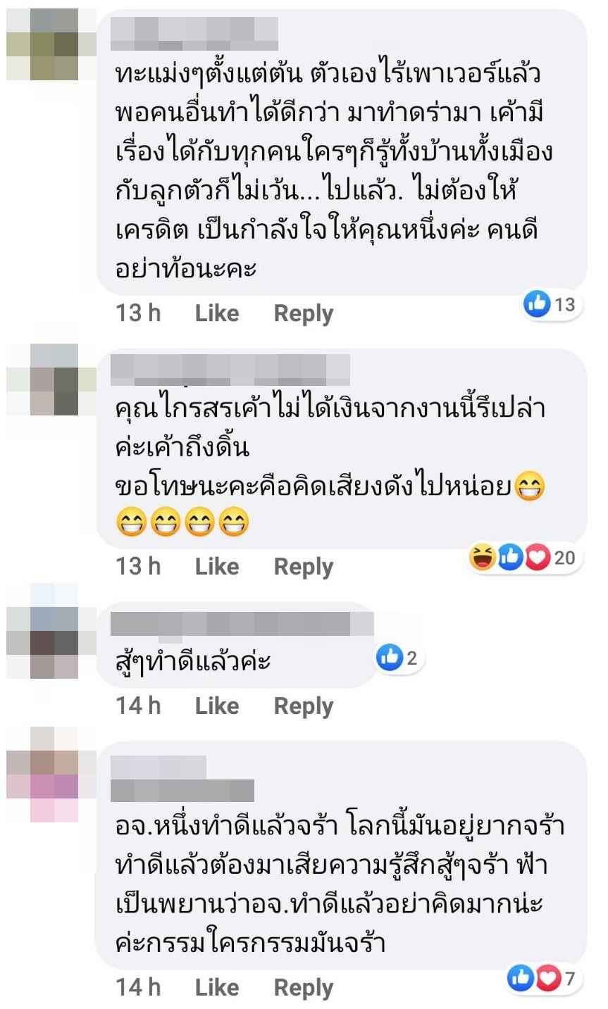 บ้างก็วิจารณ์ว่า ไกรสร ไม่ได้เงินจากงานนี้รึเปล่าถึงออกมาดิ้น พอคนอื่นทำได้ดีกว่าก็ดราม่า มีเรื่องได้กับทุกคน ใครๆ ก็รู้ทั้งบ้านทั้งเมือง กับลูกตัวก็ไม่เว้น ไม่ต้องไปให้เครดิต บ้างก็บอกว่าแม่ผึ้งเสียไป 28 ปีแล้วยังไม่วายมีปัญหากันอีกเพราะคำว่าผลประโยชน์ เชื่อว่า หนึ่ง จักรวาล ไม่ได้คิดหาผลประโยชน์จากการจัดงานครั้งนี้ และอีกฝ่ายก็คงแค่ต้องการให้มาบอกกล่าวกัน ฯลฯ