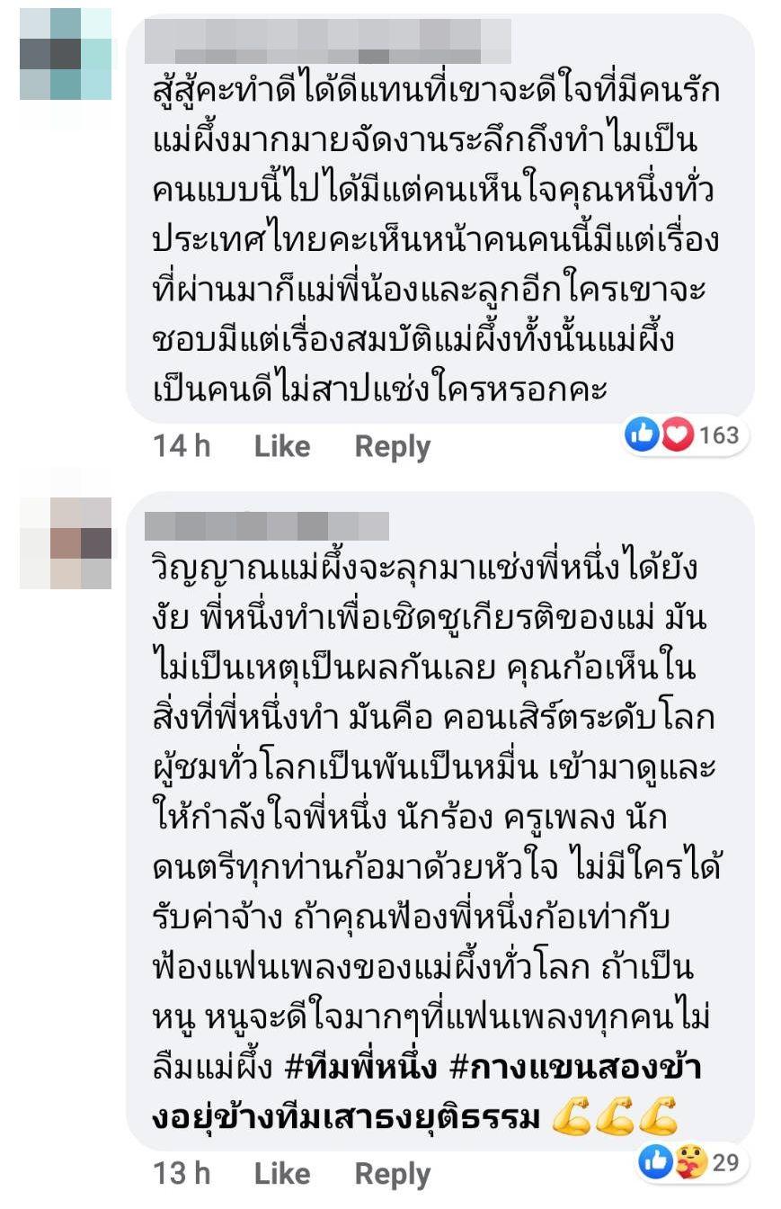 ซึ่งหลังจากที่ หนึ่ง จักรวาล โพสต์ข้อความดังกล่าว ก็มีแฟนๆ เข้ามาคอมเมนต์ให้กำลังใจเป็นจำนวนมาก และเชื่อว่าถ้า พุ่มพวง ดวงจันทร์ ยังอยู่ ก็คงดีใจกับคอนเสิร์ตครั้งนี้ และเชื่อว่า หนึ่ง จักรวาล มีเจตนาที่ดี ทำคอนเสิร์ตด้วยจิตใจบริสุทธิ์ ดีไม่ดีอยู่ที่เจตนา และเป็นการทำเพลงที่เลือนหายไปจากความทรงจำ ให้กลับมามีชีวิตอีกครั้ง