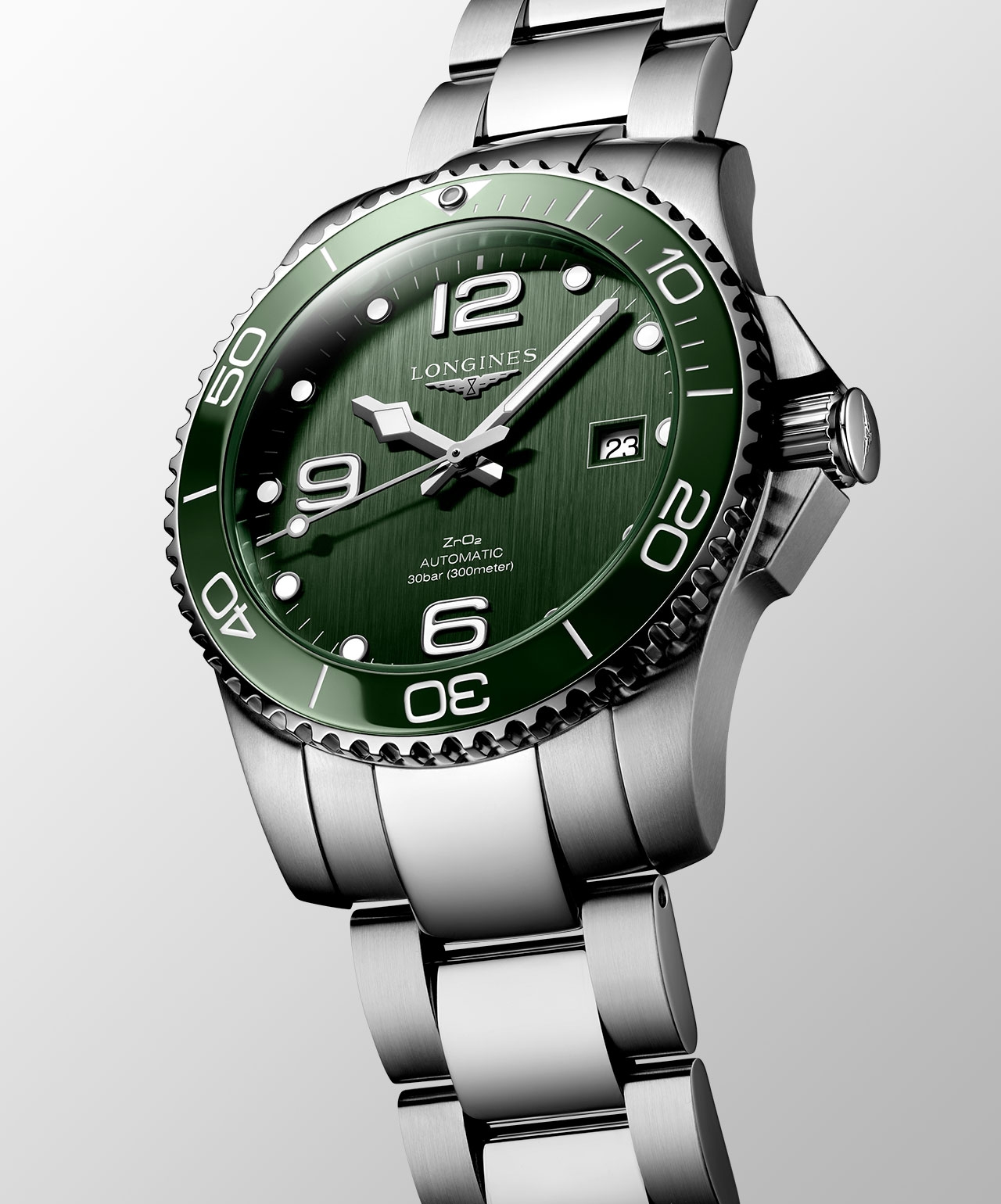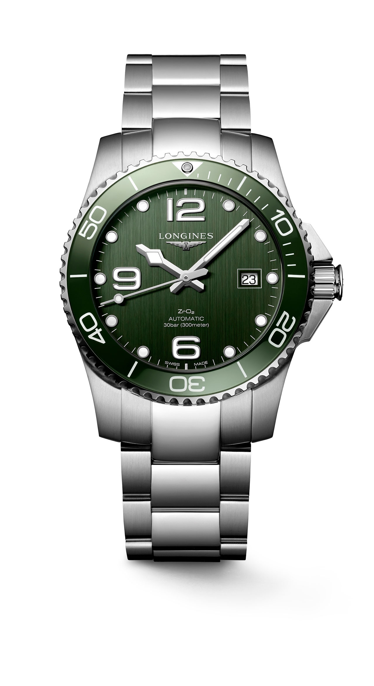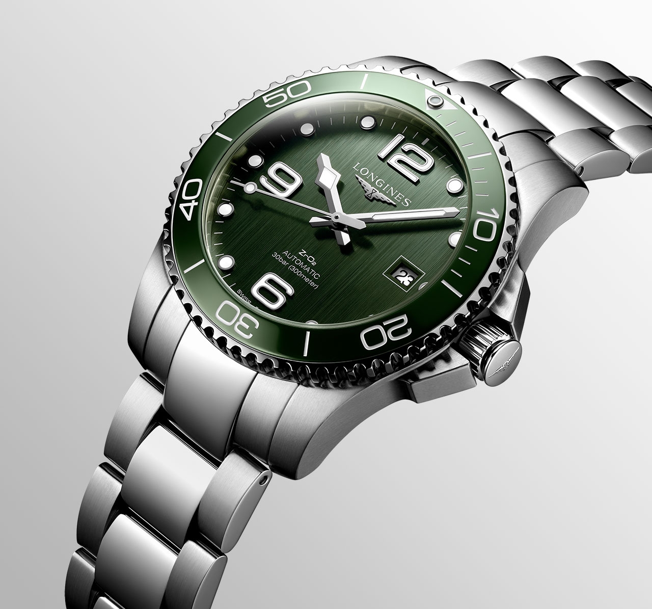 ลองจินส์เผยโฉมสีสันใหม่ล่าสุดในคอลเลกชั่น HydroConquest (ไฮโดรคอนเควสต์) กับสีเขียวเรียบหรูที่เข้ามาเสริมทัพให้กับสีอื่นๆ อย่างสีน้ำเงิน สีเทา และสีดำ โดยเฉดสีเขียวที่เลือกใช้ได้แรงบันดาลใจจากโลกแห่งกีฬาทางน้ำ และยังมาพร้อมกับขอบตัวเรือนเซรามิกสีเขียวที่ดูโมเดิร์นและเรียบเท่ในเวลาเดียวกัน โมเดล L3.785.4.06.6 Boutique Edition (บูติก อิดิชั่น) มีตัวเรือนทรงกลมขนาด 41 มม. ทำงานด้วยกลไกอัตโนมัติ คาลิเบอร์ L888.5 ถึงแม้จะมีดีไซน์ที่สวยงาม แต่ HydroConquest สีเขียวเรือนนี้ยังไม่ละทิ้งคุณสมบัติและประสิทธิภาพของนาฬิกาดำน้ำ สามารถกันน้ำได้ลึก 300 เมตร มีกำลังลานสำรองสูงสุด 64 ชั่วโมง ขอบตัวเรือนหมุนได้ทิศทางเดียว ฝาหลังตัวเรือนและเม็ดมะยมแบบขันเกลียวแน่น สายรัดข้อมือมีให้เลือก 2 แบบคือ สายสแตนเลสสตีลพร้อมตัวล็อกแบบพับสองชั้นเพื่อความปลอดภัย และการปรับขยายสำหรับการดำน้ำ และสายรับเบอร์สีเขียวพร้อมตัวล็อกสองชั้นเพื่อความปลอดภัยและกลไกปุ่มกดอัตโนมัติ ที่มาพร้อมอุปกรณ์การเปลี่ยนสายยางใน Premium Box Set