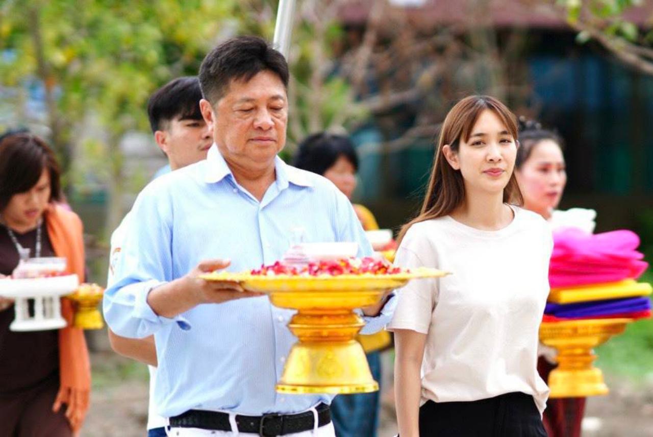 เช้านี้หน้าอิ่มเอมสุขจัง มองๆ หาอยู่ มิน พีชญา ก็ไม่ได้พกแฟนหล่อมาด้วยนะ เพราะควงคุณพ่อยังหนุ่มแน่นมาด้วย เพื่อร่วมบุญ นั่งภาวนา ถวายภัตตาหารเพลให้พระ และตั้งใจมาไถ่ชีวิตต้นหว้า ต้นใหญ่มากๆ ที่วัดสุวรรณภูมิพุทธชยันตี ๙๘๙ สมุทรปราการ.