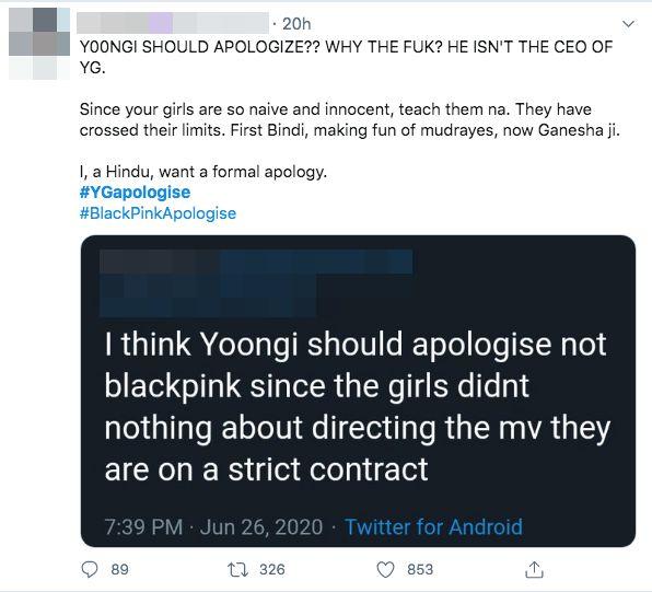 และจากประเด็นดังกล่าวทำให้แฮชแท็ก Ganesha และ #YGapologise ติดเทรนด์ทวิตเตอร์ของอินเดีย โดยมีแฟนคลับชาวอินเดียหลายคนพุ่งเป้าโจมตี ลิซ่า Blackpink และค่ายเพลง YG Entertainment ต้นสังกัดของวง Blackpink พร้อมทั้งเรียกร้องให้ YG Entertainment ออกมาขอโทษ และให้ลบฉากดังกล่าวออกจากมิวสิกวิดีโอ