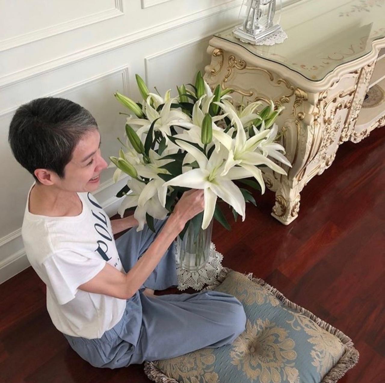 ล่าสุด นิ้ง ก็ได้โพสต์ภาพตัวเองที่กำลังนั่งจัดดอกลิลลี่ ที่สามีซื้อมาให้ลงในแจกัน ด้วยสีหน้าที่สดชื่นแจ่มใส พร้อมกับเขียนว่า "ผ่านไปแถวปากคลองตลาดวันอาทิตย์ที่แล้ว พี่ใหญ่ซื้อดอก Lily ราคา 200 บาท 1 กำ 5 ก้าน วันนี้เริ่มบานเต็มที่ สวยจัง