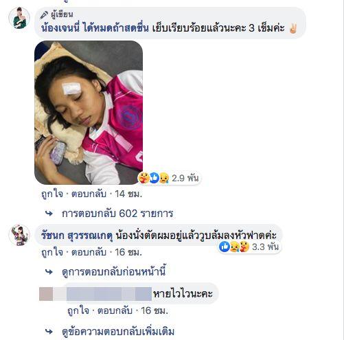 เมื่อมีคนตั้งข้อสงสัยว่าเป็นเพราะ ลิลลี่ ซ้อมเต้นหนักไปรึเปล่าถึงเป็นลมหัวฟาดพื้น เจนนี่ ก็ได้อธิบายผ่านคอมเมนต์ว่า “น้องนั่งตัดผมอยู่แล้ววูบล้มลงหัวฟาดค่ะ” พร้อมทั้งบอกว่าจากเหตุการณ์ดังกล่าวทำให้ ลิลลี่ ต้องเย็บแผลที่คิ้ว 3 เข็ม ด้าน ลิลลี่ ก็ได้โพสต์คอมเมนต์ถึงทุกคนว่า “ขอบคุณทุกกำลังใจนะคะ หนูอยู่บ้านแล้ว แต่เจ็บแผลมากเลยค่ะ” โดยมีแฟนๆ คอมเมนต์ส่งกำลังใจเป็นจำนวนมาก พร้อมทั้งบอกว่าขอให้หายเจ็บไวๆ