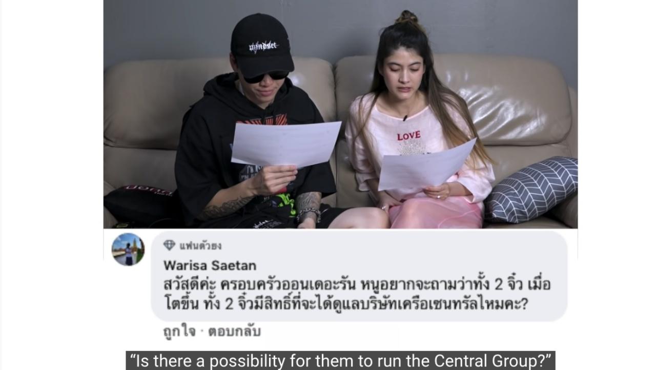 และล่าสุดในช่วงตอบคำถามของรายการ Q&A ถามตอบกับป๊อกกี้ ที่ได้เปิดให้แฟนๆ ส่งคำถามเข้ามา โดยทั้งคู่จะเป็นคนเลือกมาตอบ ซึ่งก็ได้มีแฟนคลับได้ส่งคำถามเข้ามาถามว่า เมื่อ 2 จิ๋ว น้องมีก้า-น้องมีญ่า โตขึ้น จะมีสิทธิ์ได้ดูแลบริษัทในเครือเซ็นทรัลมั้ย ซึ่งทั้งคู่ก็บอกว่า จริงๆ ลูกเค้าอยากทำอะไรก็เรื่องของเค้า เค้าอยากทำเค้าก็ไปสมัคร ถ้าเค้าไม่อยากทำอื่นๆ ก็แล้วแต่เค้า