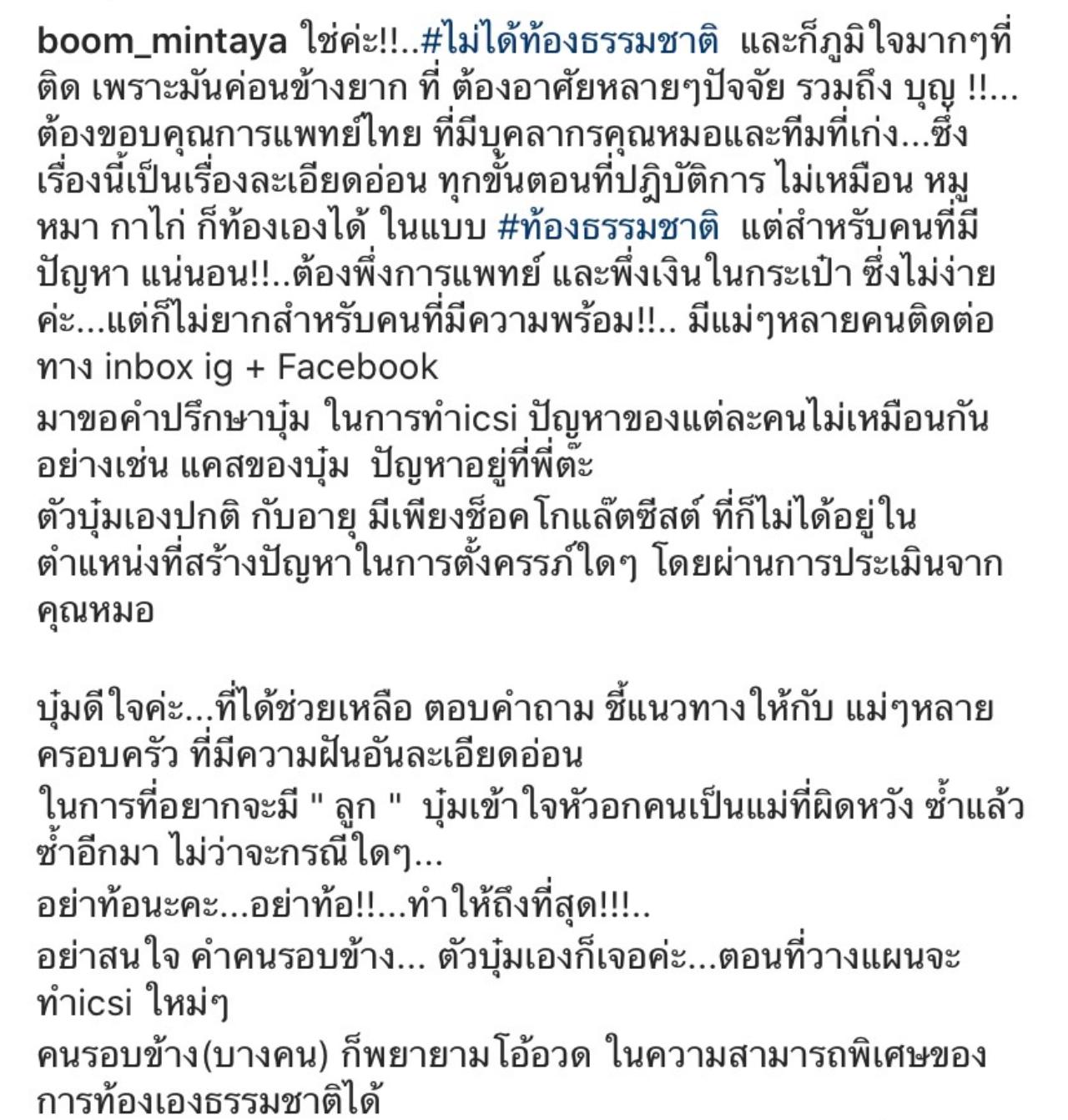 “ใช่ค่ะ!!..#ไม่ได้ท้องธรรมชาติ และก็ภูมิใจมากๆที่ติด เพราะมันค่อนข้างยาก ที่ต้องอาศัยหลายๆ ปัจจัย รวมถึง บุญ !!... ต้องขอบคุณการแพทย์ไทย ที่มีบุคลากรคุณหมอและทีมที่เก่ง...ซึ่งเรื่องนี้เป็นเรื่องละเอียดอ่อน ทุกขั้นตอนที่ปฏิบัติการ ไม่เหมือน หมู หมา กาไก่ ก็ท้องเองได้ ในแบบ #ท้องธรรมชาติ