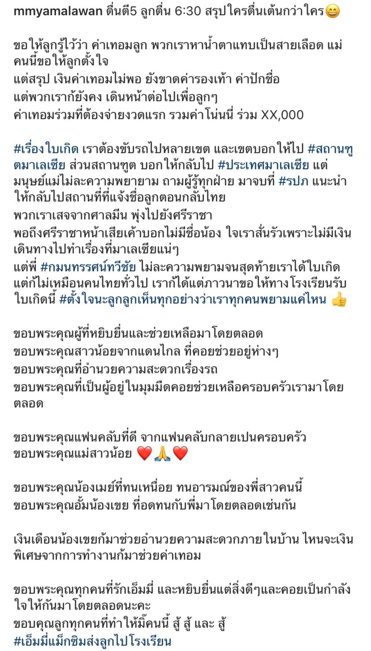 เป็นแม่ที่รักลูกและตั้งใจทำทุกอย่างเพื่อลูกจริงๆ สำหรับ เอ็มมี่ อมลวรรณ ล่าสุด เอ็มมี่ ได้โพสต์ภาพที่ไปส่งลูกสาว น้องจื้อหลิง ไปโรงเรียน พร้อมเล่าถึงความยากลำบากที่กว่าจะหาค่าเทอม จนน้ำตาแทบจะเป็นสายเลือด และใบแจ้งเกิดของลูกเพื่อเข้าโรงเรียน โดยบอกว่า