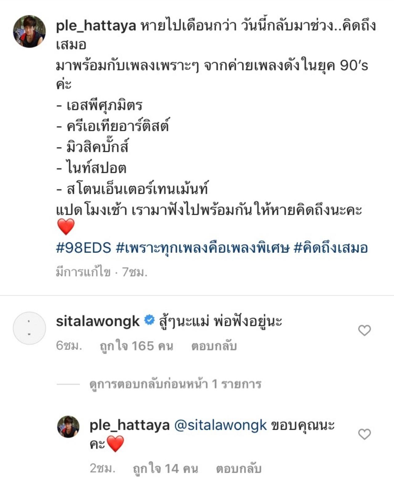 ซึ่ง น้องลูกหนัง ศีตลา ลูกสาวคนเล็กเข้ามาให้กำลังใจ รวมถึงแฟนๆ ทุกคนที่ติดตาม เปิ้ล หัทยา ต่างเข้ามาคอมเมนต์ส่งกำลังใจกันแบบรัวๆ อีกทั้งยังเปิดวิทยุฟังเพลงตามไปด้วย.