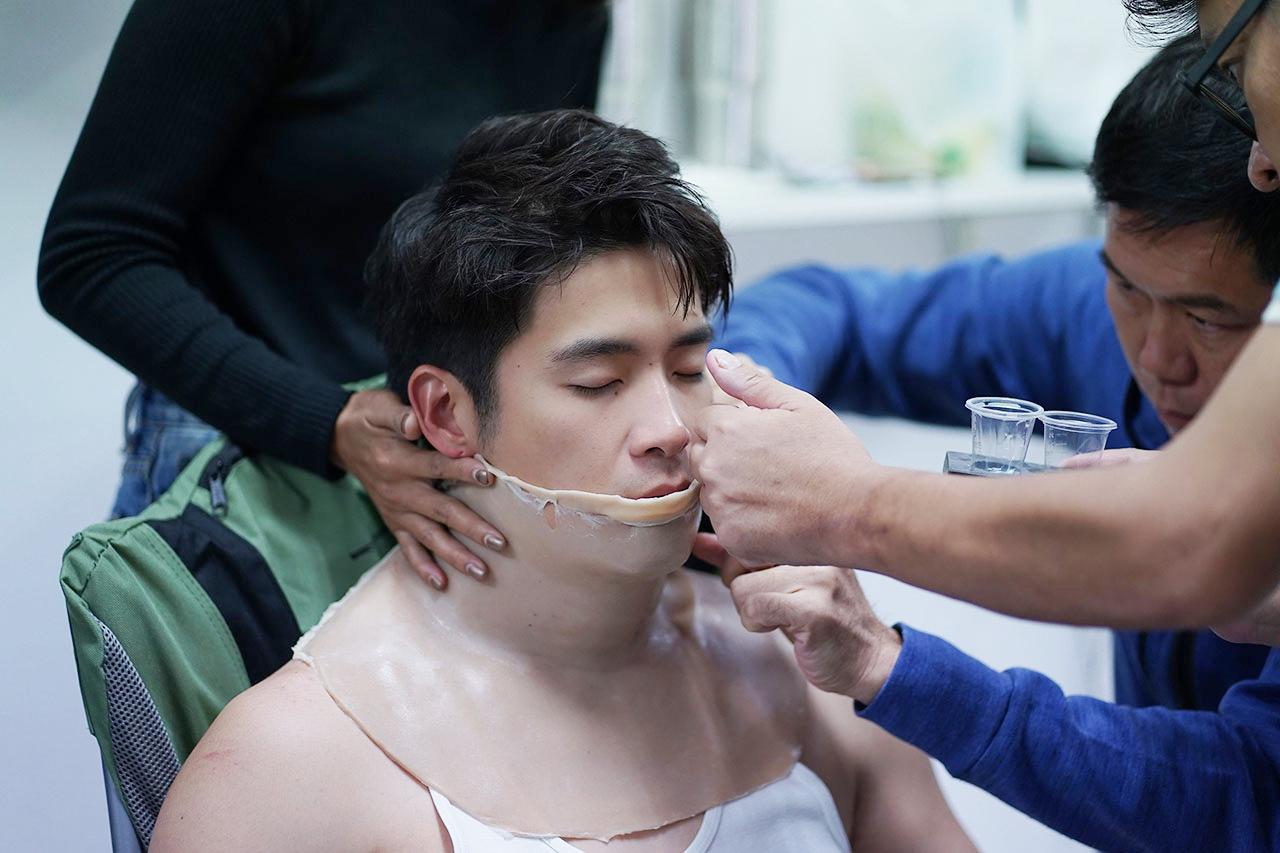 เบื้องหลัง การปั้นร่างหุ่นหมีไซส์บิ๊กในครั้งนี้ ต้องปรบมือให้กับสปิริตของพระเอก “อาเล็ก” ที่นั่งให้ทีมงานเนรมิต เพื่อความสมจริง โดยฝีมือของทีมงานเอฟเฟกต์มืออาชีพ QFX WORKSHOP มานั่งปั้นใช้เวลานานหลายชั่วโมง เริ่มตั้งแต่การหล่อชิ้นส่วนซิลิโคน จนได้ขนาดที่ต้องการ จนถึงขั้นตอนการลงสีชิ้นเนื้อต่างๆ เพื่อความสมจริง พระเอกของเราต้องอดทนนั่งนิ่งๆ เป็นเวลานาน และแบกรับน้ำหนักซิลิโคนและอุปกรณ์ต่างๆ แถมไซส์เสื้อและกางเกงก็ต้องใส่เบอร์ใหญ่ไซส์พิเศษ