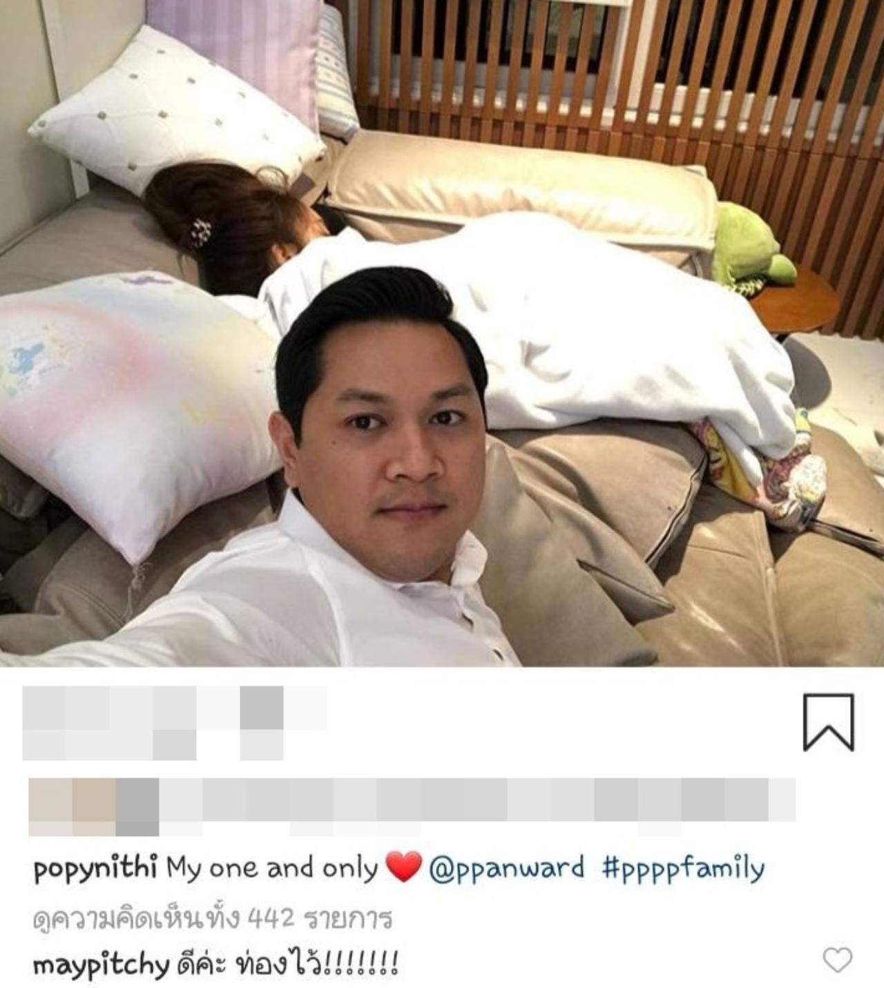 ล่าสุด ป๊อป นิธิ บุญยรัตกลิน สามีของ เป้ย ปานวาด ก็ได้ออกมาเคลื่อนไหวเป็นครั้งแรกหลังจากที่กระแสข่าวลือเรื่องครอบครัวด้วยเป็นการโพสต์รูปถ่ายติดภรรยาที่กำลังนอนหลับอยู่และเขียนแคปชั่นเป็นภาษาอังกฤษว่า “My One and only” (คุณคือคนเดียวและหนึ่งเดียวของผม) พร้อมอิโมจิรูปหัวใจสีแดง และได้แท็กถึงภรรยาของตนเอง
