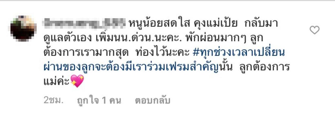 และเมื่อคุณแม่ลูก 2 เป้ย ปานวาด ได้โพสต์รูปที่พาน้องปาลินไปเรียน ทำให้แฟนๆ เห็นรูปร่างที่ผอมบางของสาวเป้ย แม่จะใส่ชุดวอร์มสีแดงสดใส แต่ก็อดเป็นห่วงไม่ได้ เพราะรูปร่างของเป้ยนั้นดูผอมไปมากๆ ต่างก็เข้ามาคอมเมนต์ให้กำลังใจและบอกให้สาวเป้ยทานให้เยอะๆ เพราะดูซูบผอมมากไปแล้ว