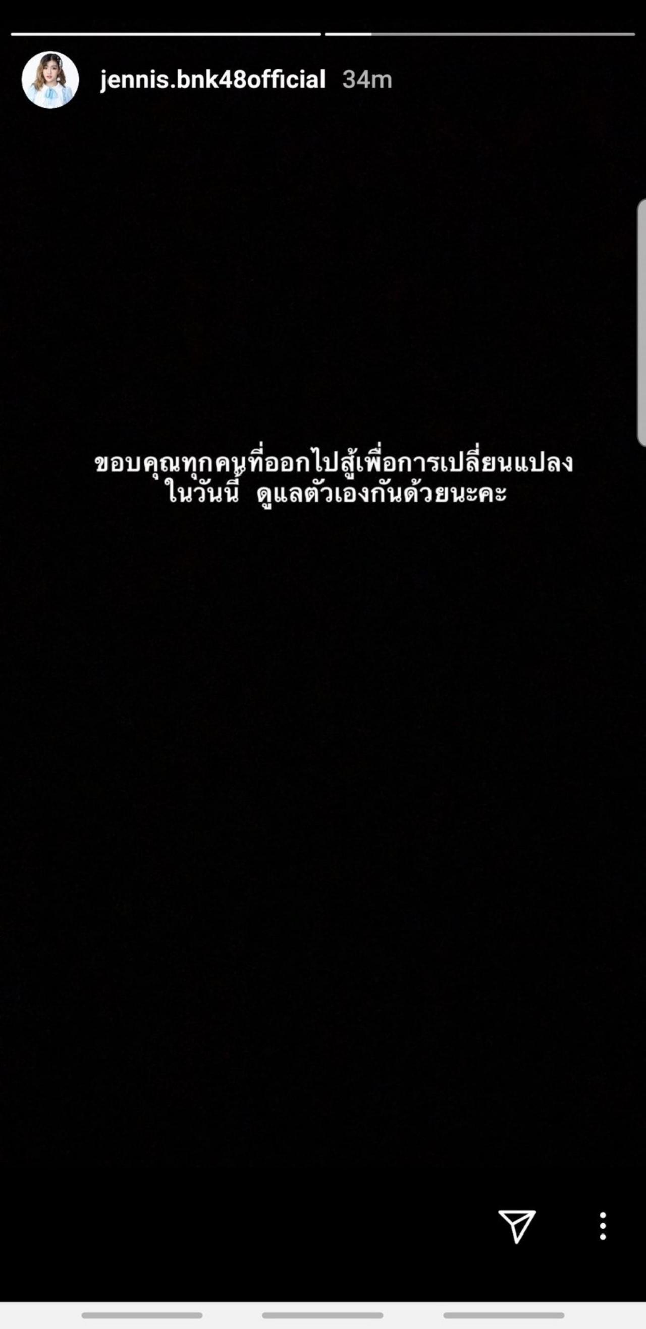 หลังจากที่มีเหตุการณ์การชุมนุมของประชาชนที่อนุสาวรีย์ประชาธิปไตยไปเมื่อวานนี้ งานนี้ก็มีคนในวงการบันเทิงออกมาแสดงความคิดเห็นถึงเรื่องนี้ และมีไอดอลสาว BNK 48 บางคน ได้ออกมาแสดงทัศนคติทางการเมือง อย่าง เจนนิษฐ์ BNK48, ขมิ้น BNK48, ฝ้าย BNK48 และ มิวสิค BNK48 ซึ่งหลังจากที่สาวๆ ได้โพสต์ข้อความแสดงทัศนคติทางการเมืองไป ก็มีชาวเน็ตและแฟนๆ ได้เข้ามาวิจารณ์ในเรื่องนี้อย่างมากมายอีกด้วย