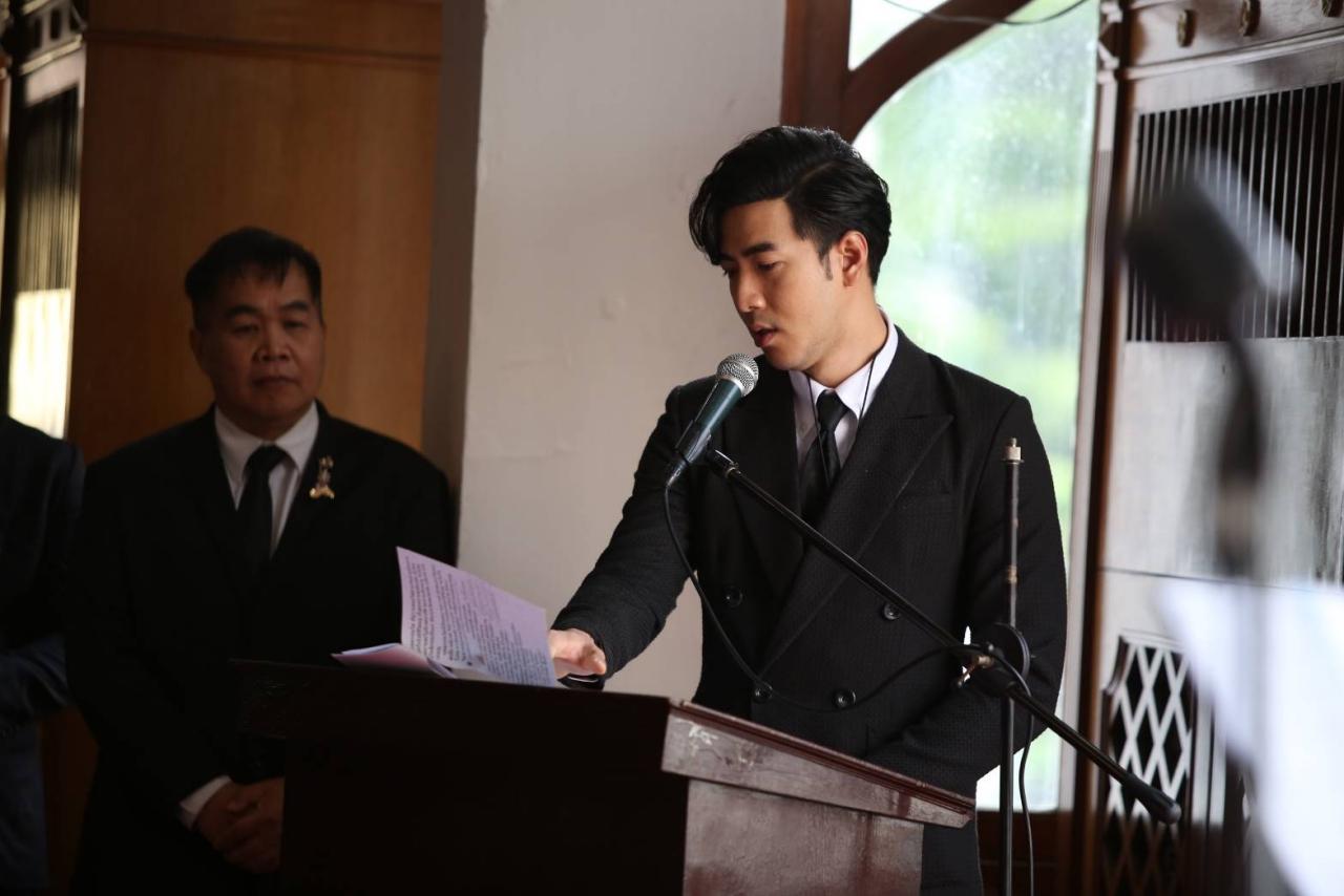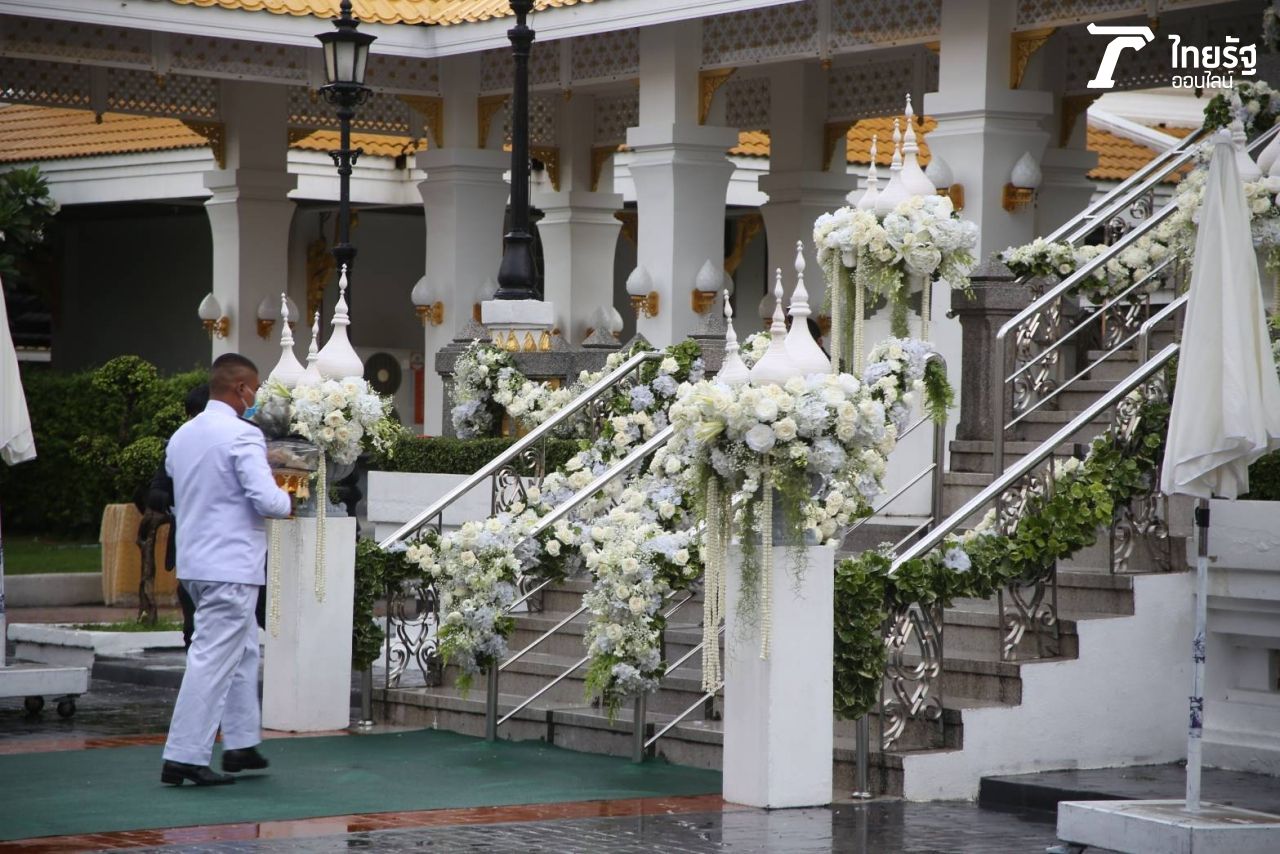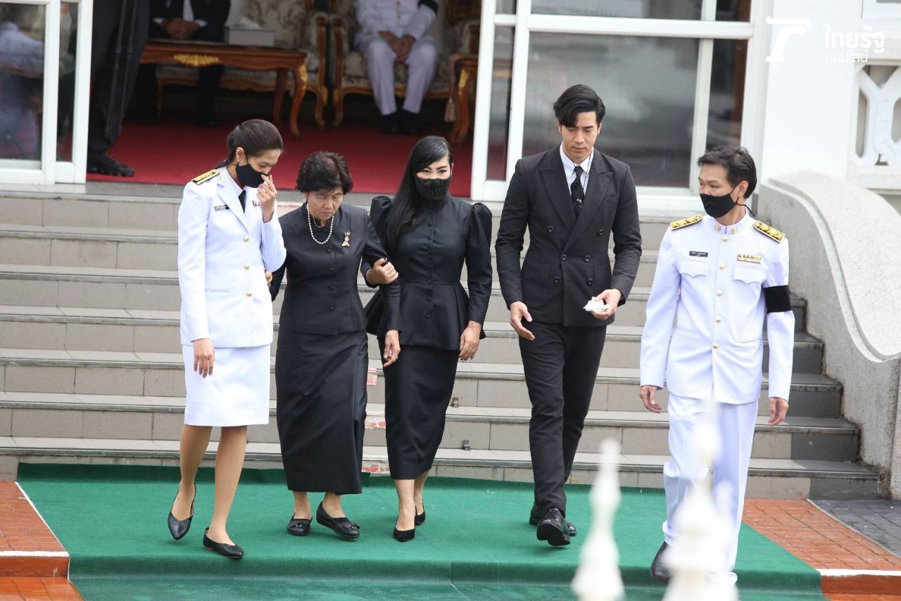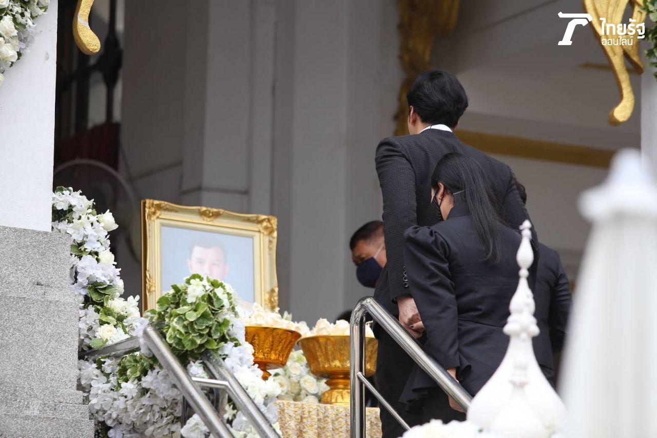 จากนั้นได้เชิญผู้มีเกียรติได้ขึ้นทอดผ้าบังสุกุล พร้อมญาติๆ บุคคลในครอบครัว และผู้มาร่วมงานทุกคนได้ขึ้นไปวางดอกไม้จันทน์หน้าหีบศพ ก่อนจะมีพิธีเผาจริงในเวลา 14.30 น.