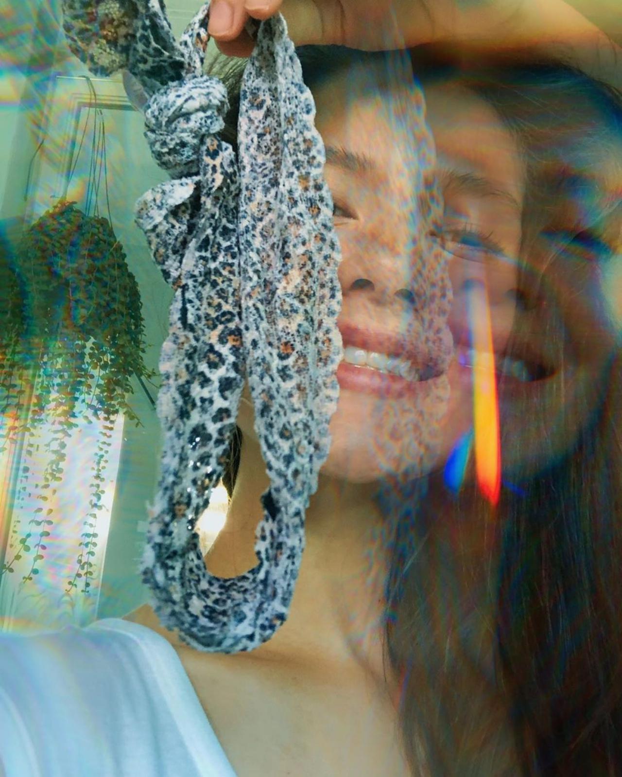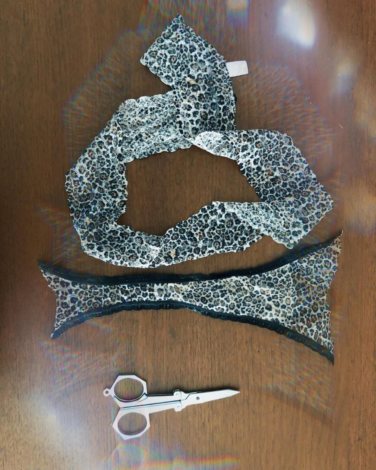 “คุณอาจจะถามว่าชุดชั้นในที่เก่าและยืดของฉันไปอยู่ที่ไหน (หรืออาจจะไม่ถาม แต่ฉันก็จะบอกอยู่ดี) ... อยู่บนหัวฉันไง! มันเอามาเป็นที่คาดหัวหรือโบว์ผูกผมได้ดีเลย #Reuse (ใช้ซ้ำ) #DontThrowItAway (อย่าโยนทิ้ง) (อย่าลืมเอาแท็กออก หากคุณจะวางมันไว้บนหัว)”