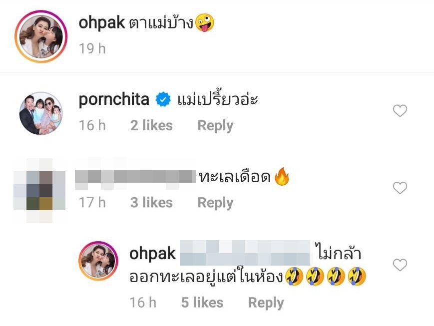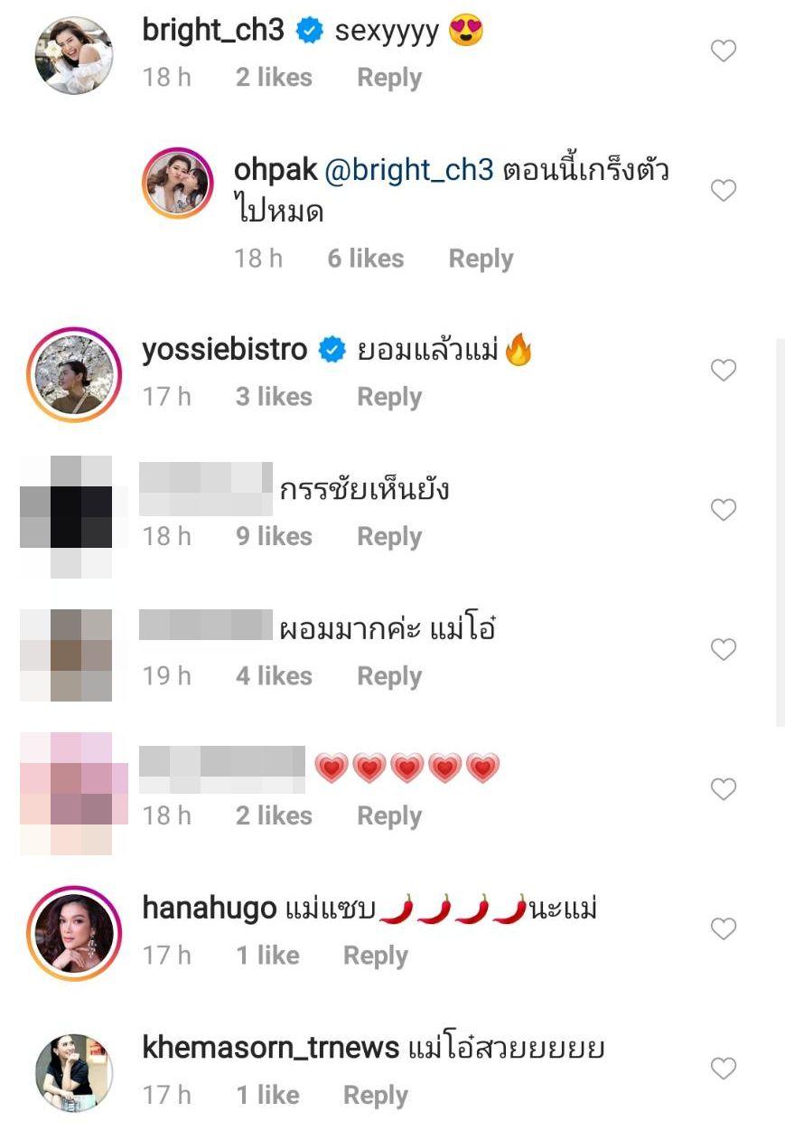 ด้านคนในวงการบันเทิงก็คอมเมนต์กันหลายคน อาทิ เบนซ์ พรชิตา “แม่เปรี้ยวอ่ะ”, ไบร์ท พิชญทัฬห์ “sexyyyy”, จ๋า ยศสินี “ยอมแล้วแม่”, ฮาน่า ทัศนวลัย "แม่แซ่บนะแม่", มิลค์ เขมสรณ์ "แม่โอ๋สวยยยยย" ฯลฯ
