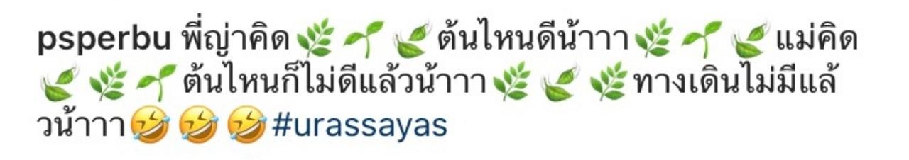 "พี่ญ่าคิด ต้นไหนดีน้าาา แม่คิด ต้นไหนก็ไม่ดีแล้วน้าาา ทางเดินไม่มีแล้วน้าาา #urassayas"