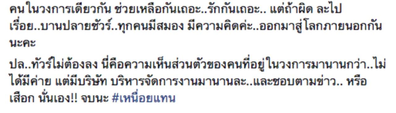 ปล..ทัวร์ไม่ต้องลง นี่คือความเห็นส่วนตัวของคนที่อยู่ในวงการมานานกว่า..ไม่ได้มีค่าย แต่มีบริษัท บริหารจัดการงานมานานละ..และชอบตามข่าว.. หรือ เสือก นั่นเอง!! จบนะ #เหนื่อยแทน".