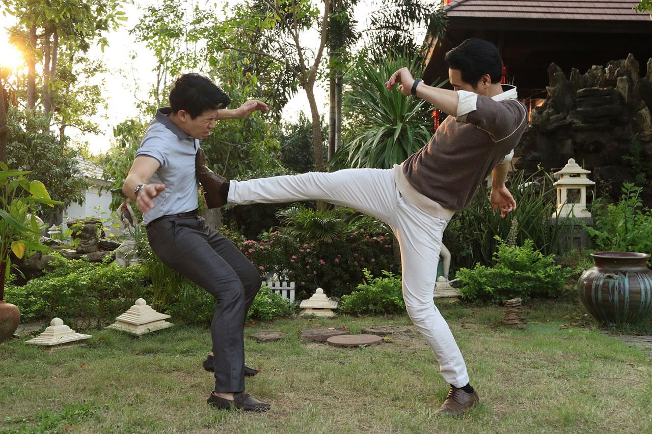 เบื้องหลังฉากนี้ทีมงานยกกองไปถ่ายทำที่ เรือนทิพย์พิมาน จังหวัดนนทบุรี เป็นซีนที่หนุ่มๆ ต้องมาฟาดฟันเชือดเฉือนกัน ซึ่งดูจากขนาดตัวแล้วเรียกได้ว่าเป็นมวยถูกคู่ อิอิ เพราะล่ำบึ้กทั้งสองคน เรื่องคิวบู๊ทั้งโอมและภูมิ บอกว่าสบายมาก เพราะผ่านฉากแบบนี้มาเยอะ แต่เพื่อกันเหนียว จึงต้องออกลีลา ซ้อมวาดวงหมัดให้แม่นยำ มิเช่นนั้นถ้าพลาดไป พูดเลยว่ามีน็อก ฮ่าๆ ด้านคนห้ามศึกที่เห็นลีลาการซ้อมคิวบู๊ของหนุ่มๆ อย่าง สาวอรแล้ว งานนี้ถึงขั้นรีบออกตัวก่อนว่า หนุ่มๆ เบาได้เบา เพราะพี่กลัวโดนลูกหลง เห็นหนุ่มๆ กำหมัดแล้วสยอง ด้วยซีนนี้นอกจากจะต้องบู๊แล้วเรื่องภาษาที่ใช้ในการด่า เอ๊ย! การสนทนาต้องอู้คำเมืองด้วย ทำให้ทั้ง หนุ่มภูมิและโอมต้องใช้สมาธิสูงในการจำบท