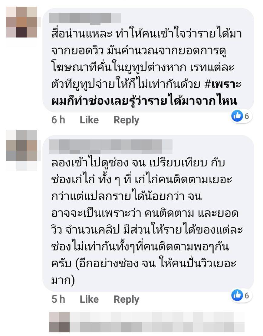 โดยมีแฟนๆ เข้ามาคอมเมนต์แสดงความคิดเห็นถึงเรื่องนี้หลายคน ซึ่งมีคนบอกว่าแท้จริงแล้วรายได้จากการทำคลิปในยูทูบจะคำนวณจากยอดการดูโฆษณาที่คั่นในยูทูบต่างหาก และเรตแต่ละตัวที่ยูทูบจ่ายให้ก็ไม่เท่ากัน บ้างก็ยกตัวอย่างเปรียบเทียบระหว่างเจนนี่ ได้หมดถ้าสดชื่น กับเก๋ไก๋ สไลเดอร์ ยูทูบเบอร์สาวชื่อดัง ทั้งที่ช่องเก๋ไก๋คนติดตามเยอะกว่า แต่รายได้น้อยกว่าของเจนนี่ อาจเป็นเพราะคนติดตาม ยอดวิว จำนวนคลิป มีส่วนให้รายได้ของแต่ละช่องไม่เท่ากันทั้งๆ ที่คนติดตามพอๆ กัน