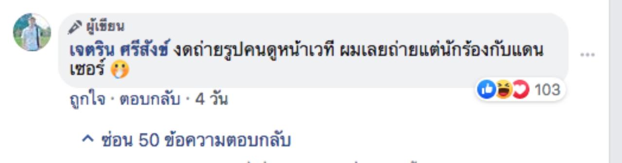 พร้อมกับสังเกตว่าช่วงหลังๆ เวลาที่ค่ายได้หมดถ้าสดชื่นลงภาพเวลาไปงานคอนเสิร์ต ก็ไม่ลงภาพคนดูเลย มีแต่ลงภาพนักร้องเท่านั้น ซึ่งทางด้าน เนเงิน ศรีสังข์ แฟนหนุ่มของ เจนนี่ ได้หมดถ้าสดชื่น ก็ได้ตอบคำถามที่หลายคนสงสัยว่า "งดถ่ายรูปคนดูหน้าเวที ผมเลยถ่ายแต่นักร้องกับแดนเซอร์" งานนี้คงทำให้หลายคนหายสงสัยกันไปบ้าง.
