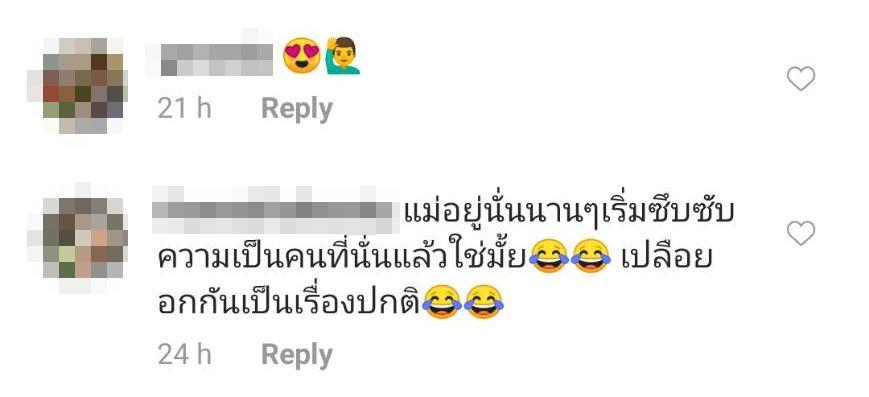 งานนี้ทำเอาหลายคนแห่คอมเมนต์อิโมจิไฟลุก บ้างก็แซวว่าแม่อยู่นั่นนานๆ เริ่มซึมซับความเป็นคนที่นั่นแล้วใช่มั้ย เปลือยอกกันเป็นเรื่องปกติ และมีบางคนแซวว่าเอาผมออกด้วย.
