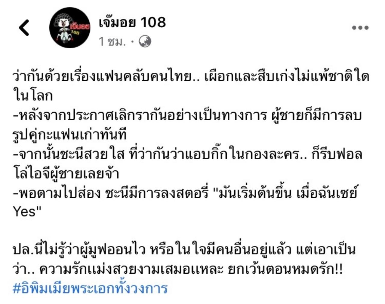 ทำเอาบรรดาขาเม้าท์ต่างให้ความสนใจกันมาทีเดียว เมื่อมีเพจดังได้แชร์ข้อความว่าด้วยเรื่องความรักของผู้ชายในวงการบันเทิง โดยเขียนคำใบ้ว่า