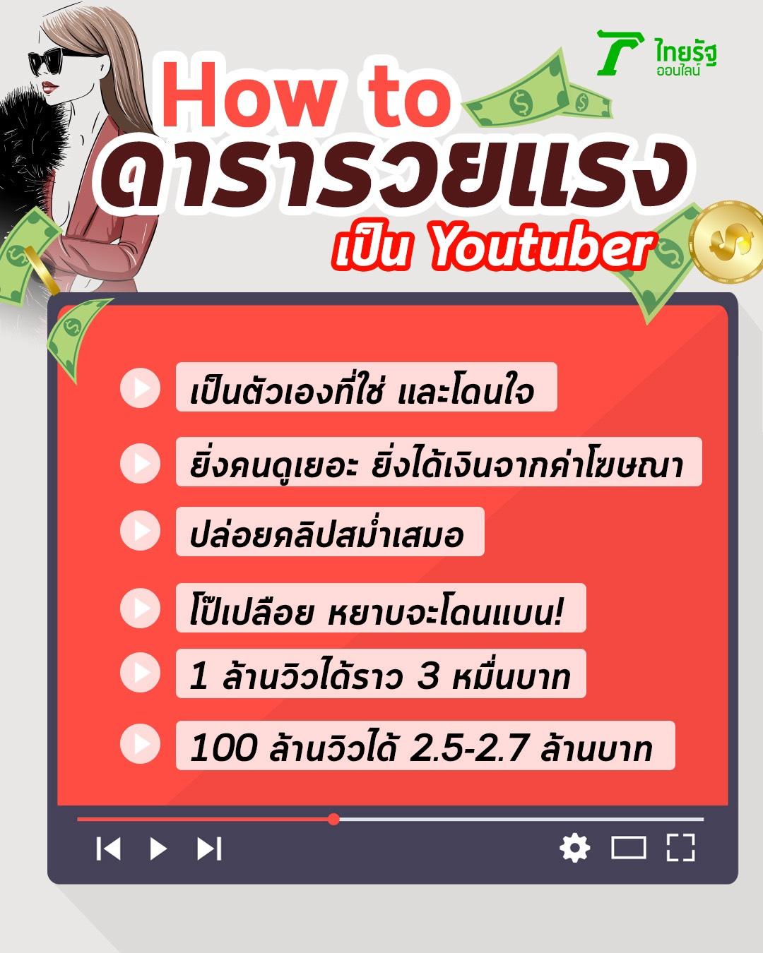 เบื้องต้นยอดซับสไครบ์ subscribe ต้องเกิน 10,000 ขึ้นไป จึงจะร่วมหาเงินกับทางยูทูบได้ ส่งเอกสารหลักฐานต่างๆ ให้ทางยูทูบพิจารณาราว 1 เดือน ถ้าผ่านก็เริ่มหาเงินกันได้กับยูทูบ เรื่องรายได้มีปรับเปลี่ยนไปตลอด ล่าสุด 1 ล้านวิว ได้ประมาณ 30,000 บาท ถ้ายอดวิวพุ่งไปที่ 100 ล้านวิว ก็จะได้เงินประมาณ 2.5-2.7 ล้านบาท