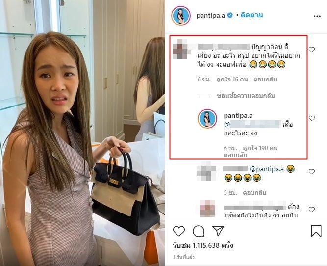 แต่แล้วก็มีคอมเมนต์ดราม่าจากชาวเน็ตรายหนึ่งที่เขียนข้อความว่า “ปัญญาอ่อนดี เสียงอะอะไร สรุปอยากได้รึไม่อยากได้ งง จะแอ๊บเพื่อ” งานนี้มีหรือ ปุ้มปุ้ย จะนิ่งเฉย สวนกลับด้วยประโยคสุดแซ่บว่า “เสื_กอะไรอ่ะ งง” ก่อนจะมีแฟนๆ หลายคนเข้าไปต่อว่าเจ้าของคอมเมนต์ดังกล่าว.