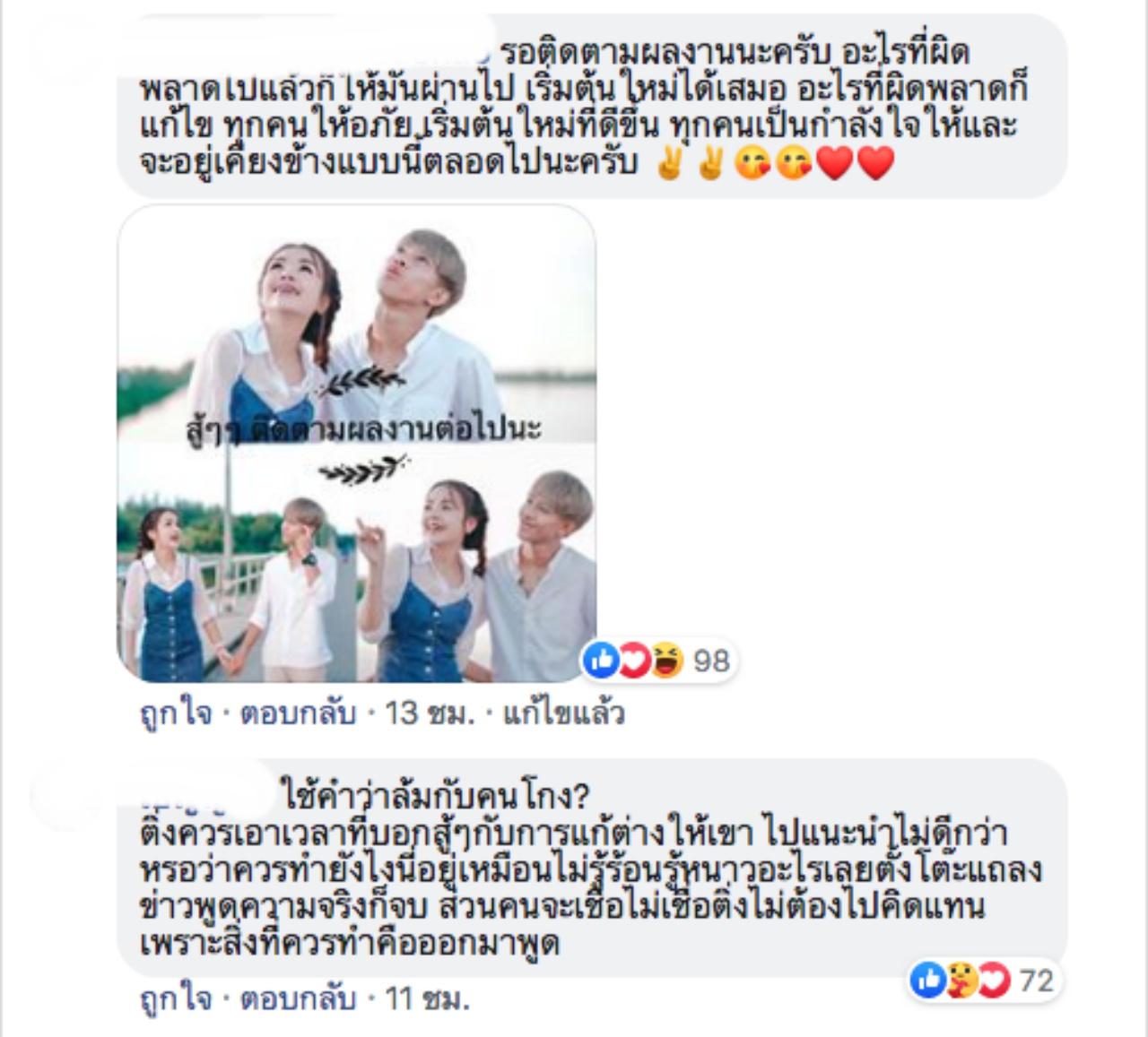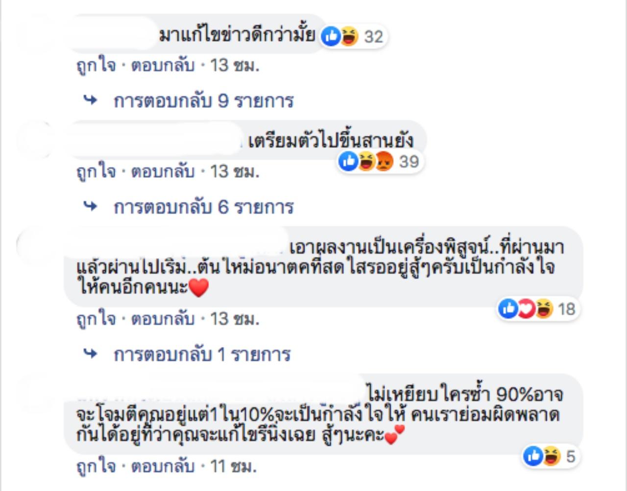 ซึ่งก็มีแฟนๆ เข้ามาให้กำลังใจ เจนนี่ กันไม่น้อยเลยทีเดียว โดยบอกว่า เดี๋ยวเรื่องร้ายๆ มันก็ผ่านไป สักวันฟ้าก็ต้องเปลี่ยนสี ไม่มีใครไม่เคยผิด อยากให้มันเป็นบทเรียน แต่อย่ากลับไปเป็นอย่างเดิม เดี๋ยวมันก็ผ่านไป ให้สู้ต่อไป
