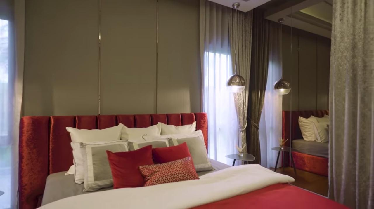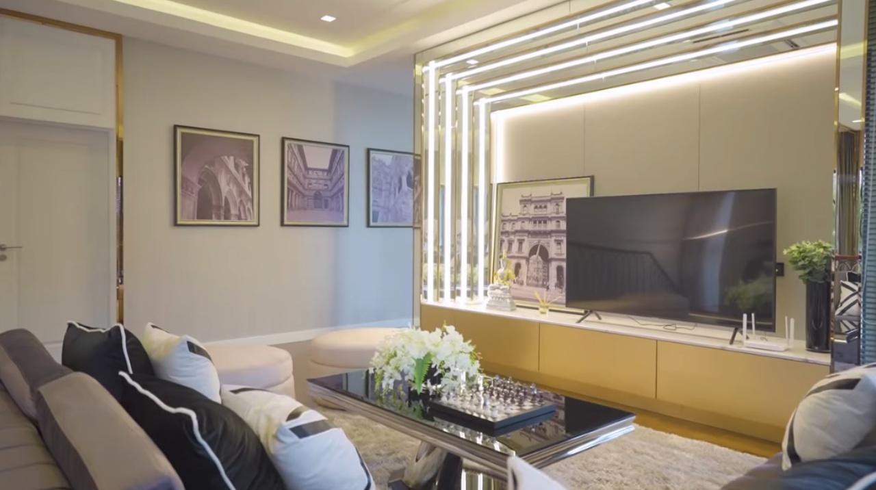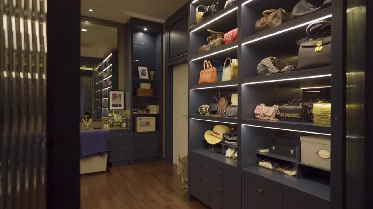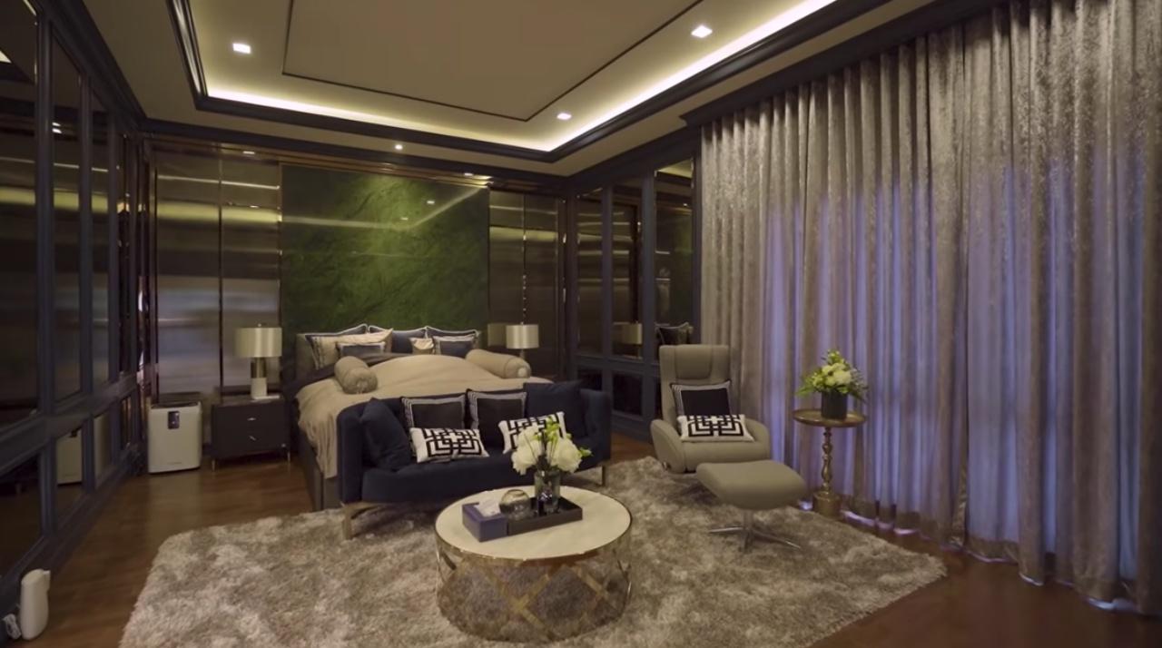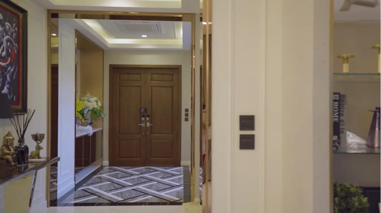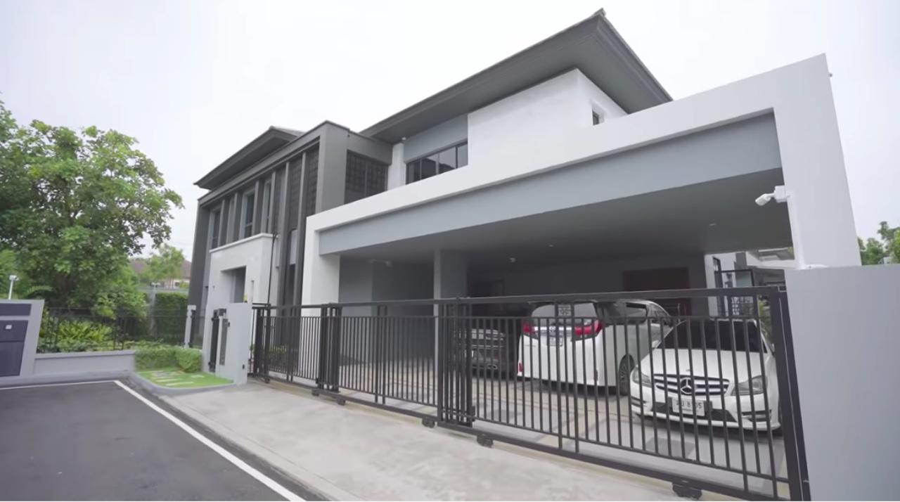 นอกจากนี้ทั้งคู่ได้พาทัวร์ในบ้านตามมุมและพื้นที่ต่างๆ เมื่อเปิดประตูรั้วเข้ามาก็จะเจอกับสวนหน้าบ้านพร้อมน้ำพุ ที่ทั้งโครงการมีแค่บ้านนี้บ้านเดียว ดีเจแมน ใช้นั่งเล่นเป็นประจำ สามารถมองเห็นได้จากภายในบ้าน ที่ตกแต่งไว้อย่างเรียบหรู เน้นสีทอง เมื่อกระทบกับแสงไฟยิ่งทำให้บรรยากาศอบอุ่นแถมดูดีไปในตัว