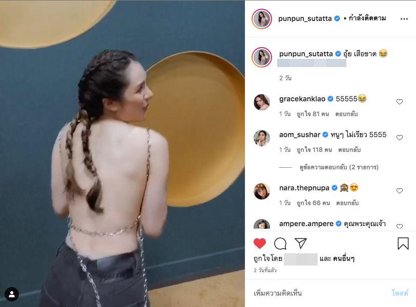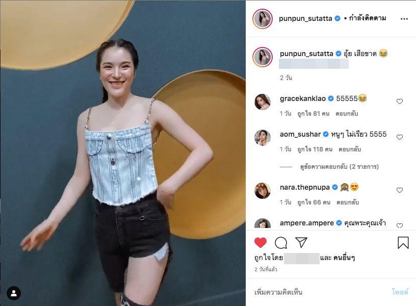 ล่าสุด ปันปัน สุทัตตา โพสต์คลิปวิดีโอพร้อมแคปชั่น “อุ๊ย เสื้อขาด” ซึ่งในคลิปนี้ปันปันใส่เสื้อสายเดี่ยวที่ข้างหน้าเป็นผ้ายีนส์ ดูเหมือนจะไม่มีอะไร แต่หันหลังมาเท่านั้นแหละทำเอาหลายคนถึงกับอึ้งไปเลยจ้า เพราะเผยให้เห็นผิวหลังขาวเนียนเต็มๆ ตา ส่วนกางเกงก็ขาด เพราะข้างหนึ่งขายาว แต่อีกข้างขาสั้น (ชมคลิป คลิกที่นี่)