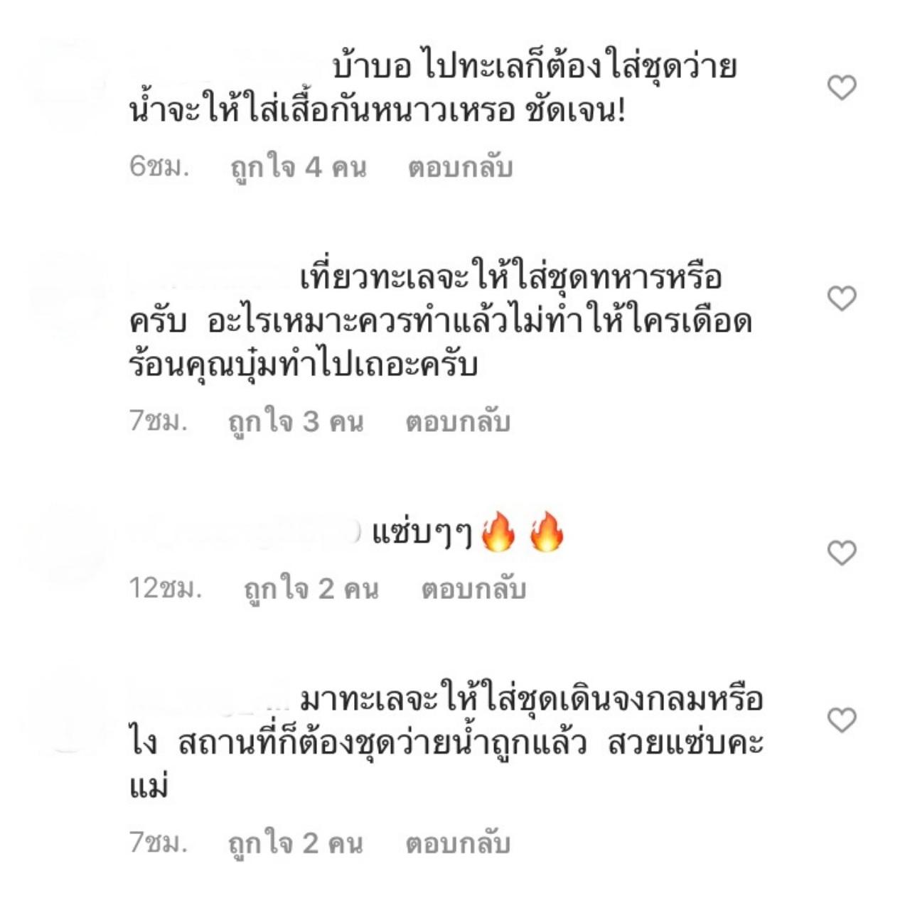 และด้านคนที่ติดตามต่างก็เห็นด้วยกับ บุ๋ม ปนัดดา โดยเข้ามาคอมเมนต์ในทำนองว่า ไปทะเลก็ใส่ชุดว่ายน้ำน่ะถูกแล้ว จะให้ใส่โจงกระเบนรึไง และการไปเที่ยวทะเลแล้วใส่ชุดว่ายน้ำ มันเกี่ยวกับการต่อต้านข่มขืนตรงไหน ทุกอย่างมันอยู่ที่จิตสำนึก และอยากให้เปลี่ยนทัศนคติด้วยว่า การข่มขืนที่เป็นข่าวเค้าก็แต่งตัวปกติ มันอยู่ที่ตัวบุคคลที่ไปข่มขืนเค้า อยากให้ลองเปลี่ยนทัศนคติดู และอย่าอคติถ้ายังไม่เรียนรู้พอ เปิดโลกให้ชัดขึ้นดีกว่า.