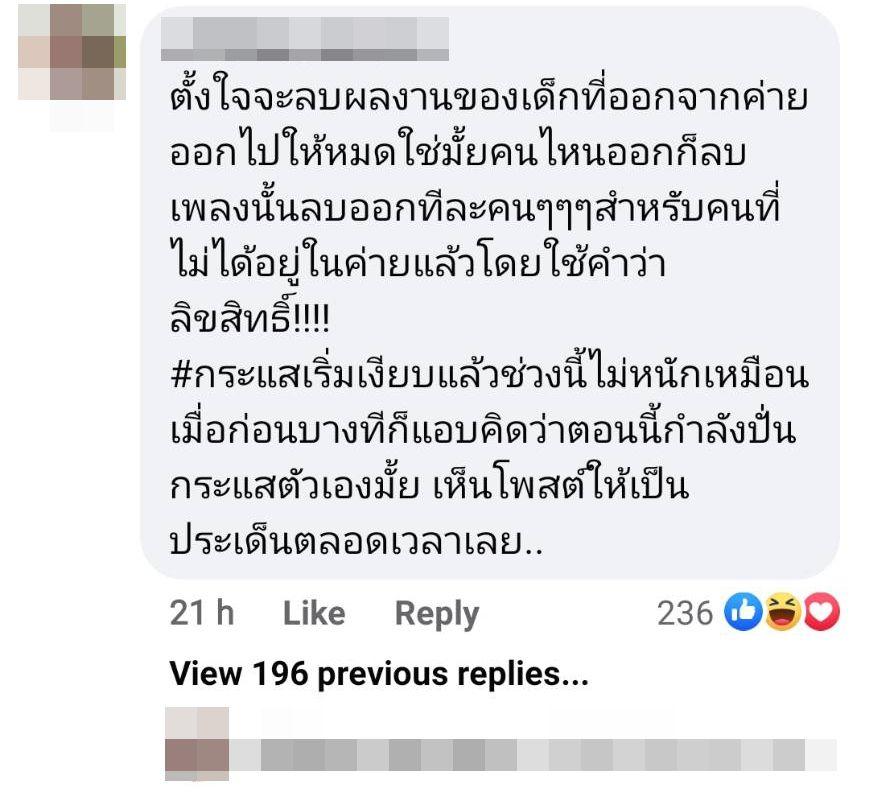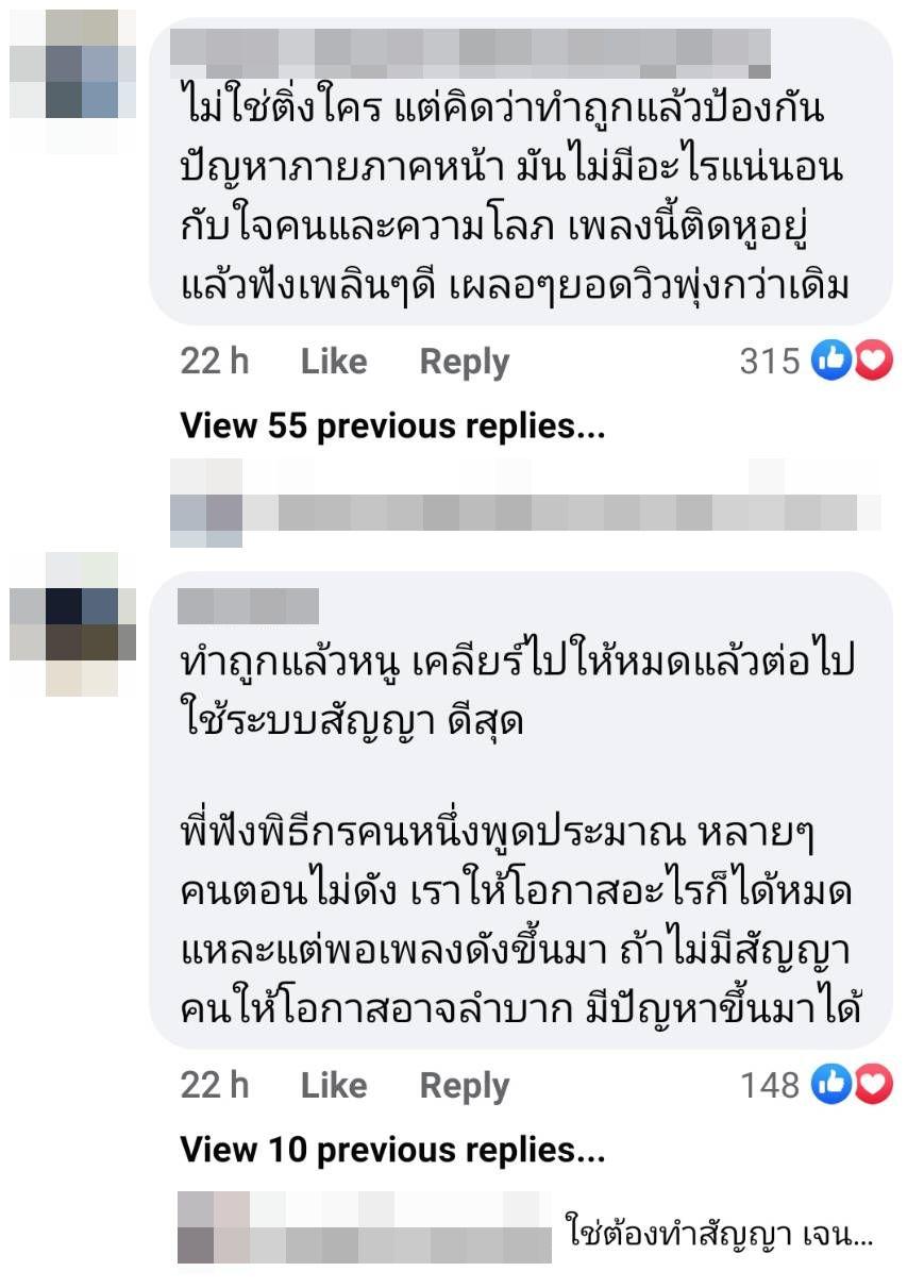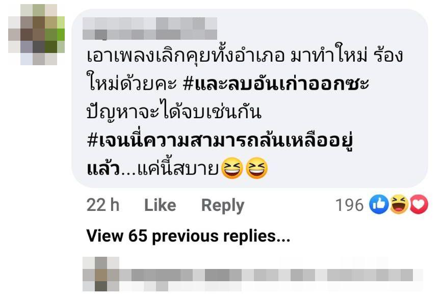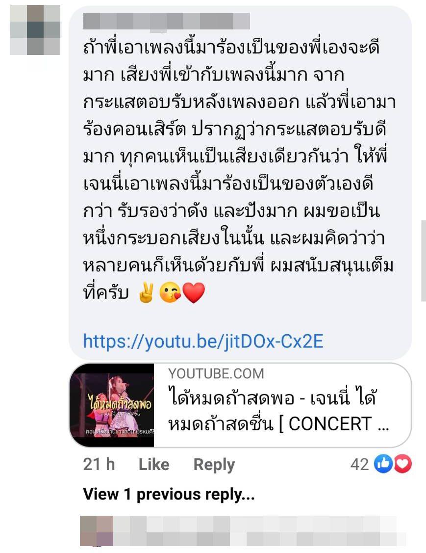โดยมีชาวเน็ตบางคนเข้ามาคอมเมนต์ให้กำลังใจ บ้างก็บอกว่าเสียงของเจนนี่เข้ากับเพลงนี้ ตอนเจนนี่เอามาร้องในคอนเสิร์ตแล้วกระแสดีมาก ทุกคนเลยอยากให้เจนนี่เอามาร้องเอง บ้างก็บอกว่าเจนนี่ทำถูกแล้วเพื่อป้องกันปัญหาในภายหลัง แต่ก็มีชาวเน็ตที่วิจารณ์ว่าตั้งใจจะลบผลงานเพลงของเด็กที่ออกจากค่ายจนหมดใช่หรือเปล่า และหาว่าเจนนี่ปั่นกระแสตัวเอง โพสต์ให้เป็นประเด็นตลอด ฯลฯ