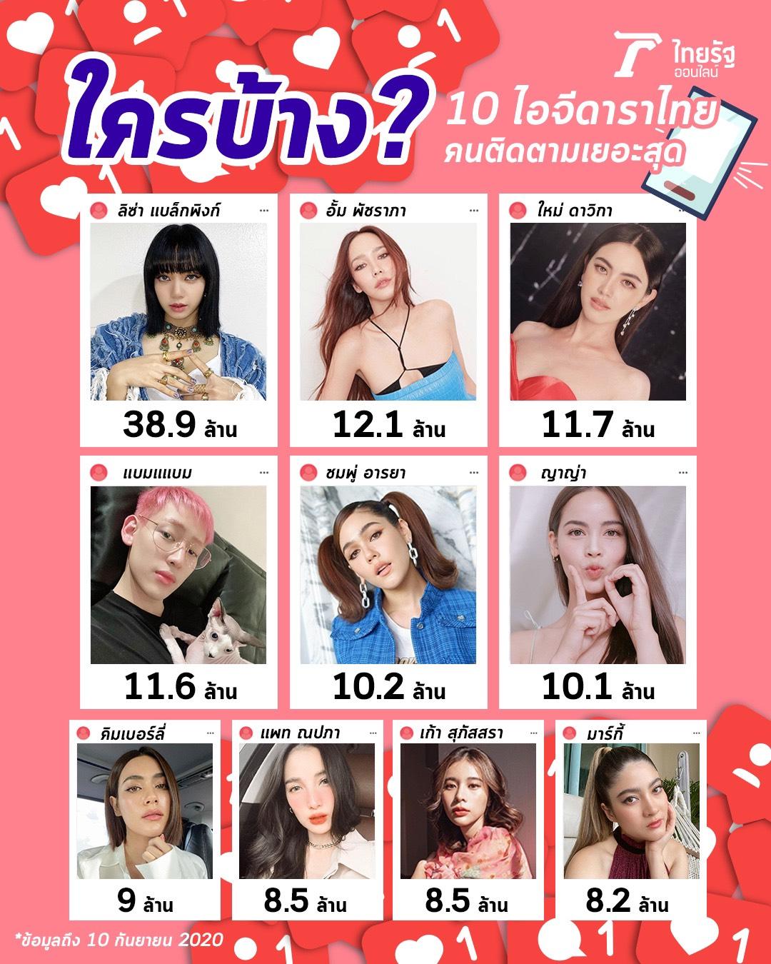 TOP 10 ดาราไทยคนติดตามอินสตาแกรมเยอะสุด