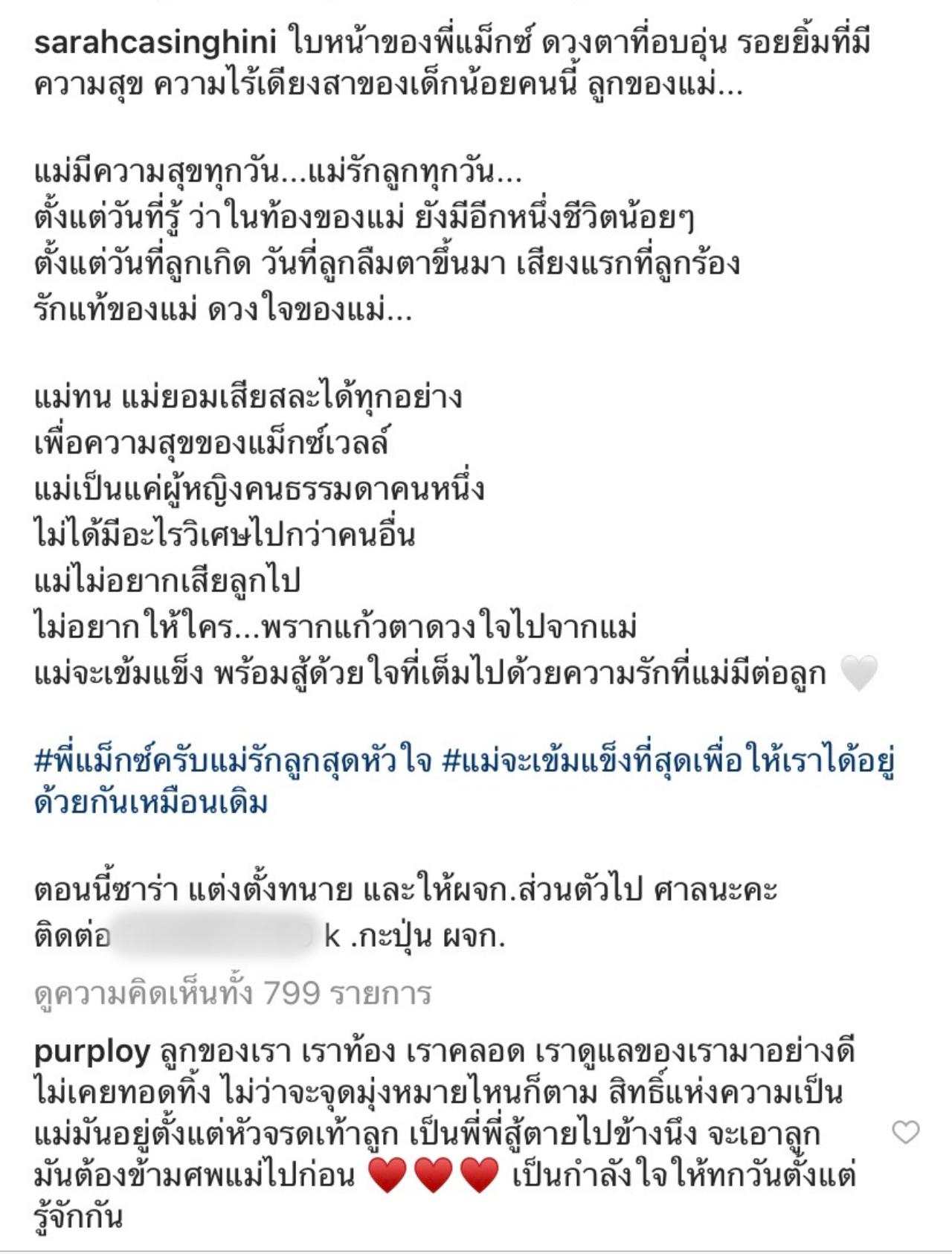 หลังจากที่ซิงเกิลมัม ซาร่า คาซิงกินี โพสต์จะขอสู้เพื่อไม่ให้ใครมาพรากลูกไป หลังจากที่ ไมค์ พิรัชต์ ยื่นเรื่องต่อศาลขอสิทธิ์ร่วมเลี้ยงลูก หลังจากที่ไม่ได้เจอหน้าลูกชายมาหลายเดือน