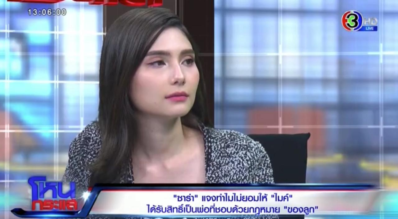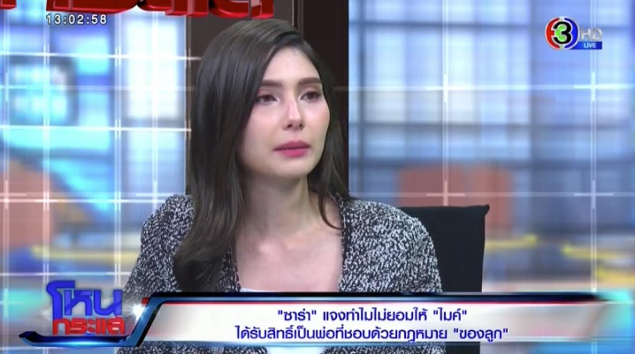 ซาร่า : อยากให้จบลงเป็นผลดีที่สุดของลูก เพราะเรื่องนี้เป็นของลูกเป็นหลัก ไม่ใช่เรื่องของพ่อแม่ คือเรื่องนี้ซาร่ากับไมค์มีปัญหามาเป็นปี ไม่อยากให้ลูกรู้เลยเลือกที่จะเงียบ แต่วันนี้ทางฝั่งพ่อเขาเลือกที่จะให้เป็นข่าว ซาร่ามองว่าคนที่กระทบที่สุดคือลูก เราไม่อยากออกมานั่งตรงนี้เพื่อตีแผ่เรื่องในครอบครัว ค่อนข้างละเอียดอ่อน อีกไม่กี่ปีน้องต้องโตมาแล้วเจอว่าพ่อแม่มีปัญหากัน (เสียงสั่นเครือ) คนที่จะต้องเจ็บปวดที่สุดก็คือลูก อยากให้เป็นเรื่องในครอบครัว แต่ ณ วันนี้ ทุกคนน่าจะรู้ว่ามันเป็นข่าว บางอย่างซาร่าต้องออกมาพูด และปกป้องสิทธิต่างๆของลูก
