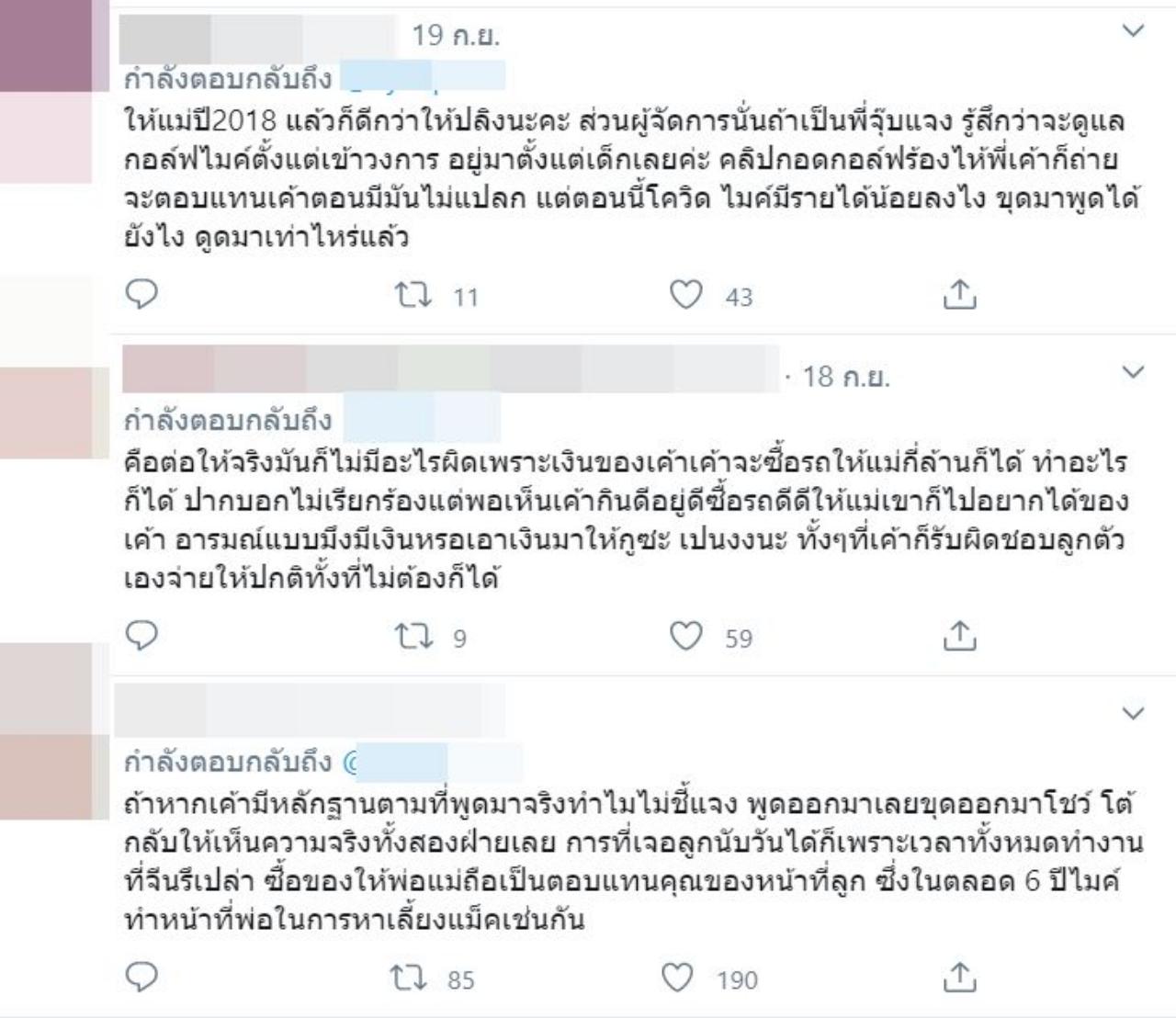 หลังจากที่ข้อความนี้ถูกแชร์ในโลกโซเชียล ก็มีคนเข้ามาคอมเมนต์วิจารณ์กันอย่างมากมาย โดยบอกว่า โพสต์เหมือนวงใน แต่ตุ้บตั้งแต่เรื่องซื้อรถให้แม่ตั้งแต่ปี 2018 โยงกับเรื่องที่ประหยัดหลังโควิดปีนี้ พร้อมกับบอกว่า ถ้ามีหลักฐานก็เอามาชี้แจง โต้กลับให้เห็นความจริงทั้งสองฝ่าย