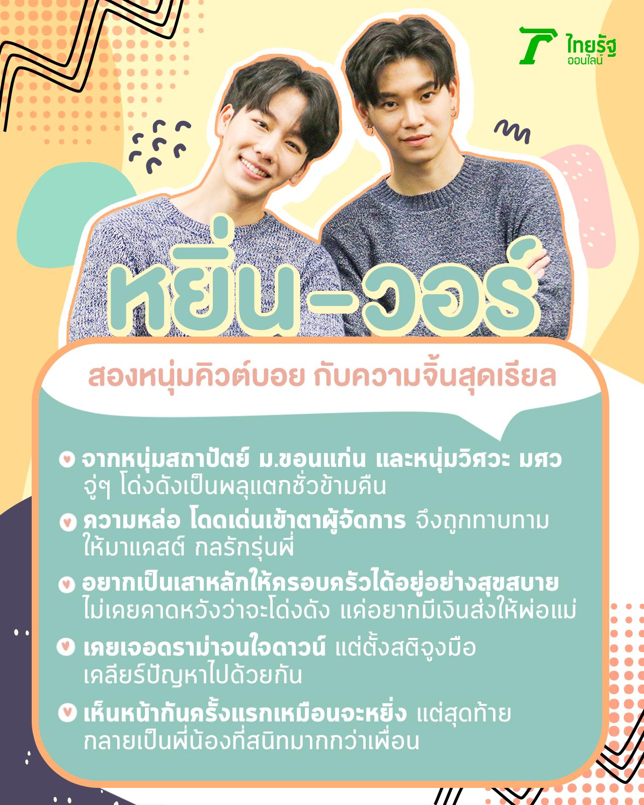 - เปิดใจ 2 หนุ่มคู่จิ้น หยิ่น - วอร์ ผู้คว้าหัวใจสาวๆ เกือบทั่วประเทศ