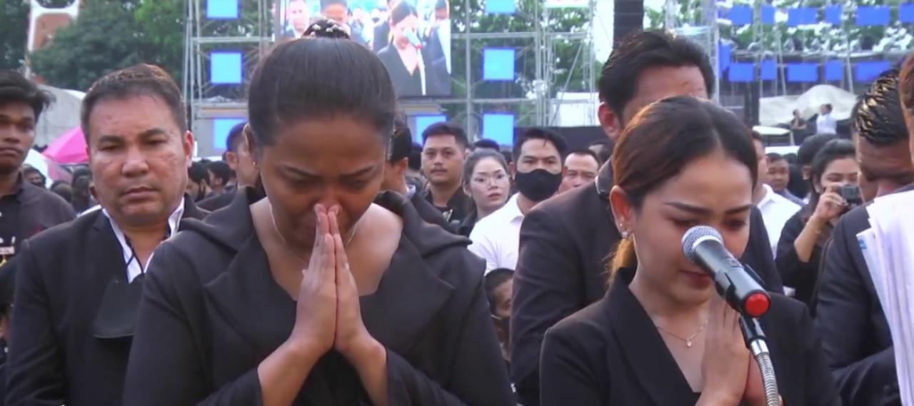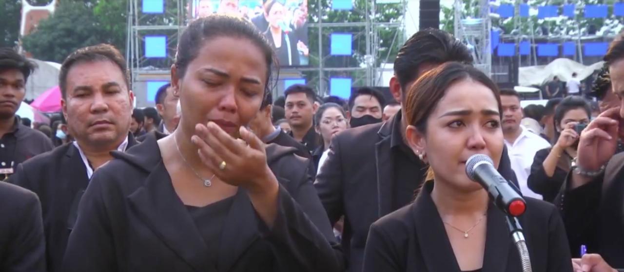 “ต้องขอขอบพระคุณแขกผู้ใหญ่ทุกท่าน บรรดาแฟนคลับ สื่อมวลชนทุกคน ย้อนไปเมื่อประมาณ 1 เดือน ตอนที่พ่อเริ่มป่วย หนูสองคนได้มีโอกาสมาดูแลพ่อ โดยที่ไม่ได้คิดว่าจะเป็นช่วงสุดท้ายของพ่อจริงๆ
