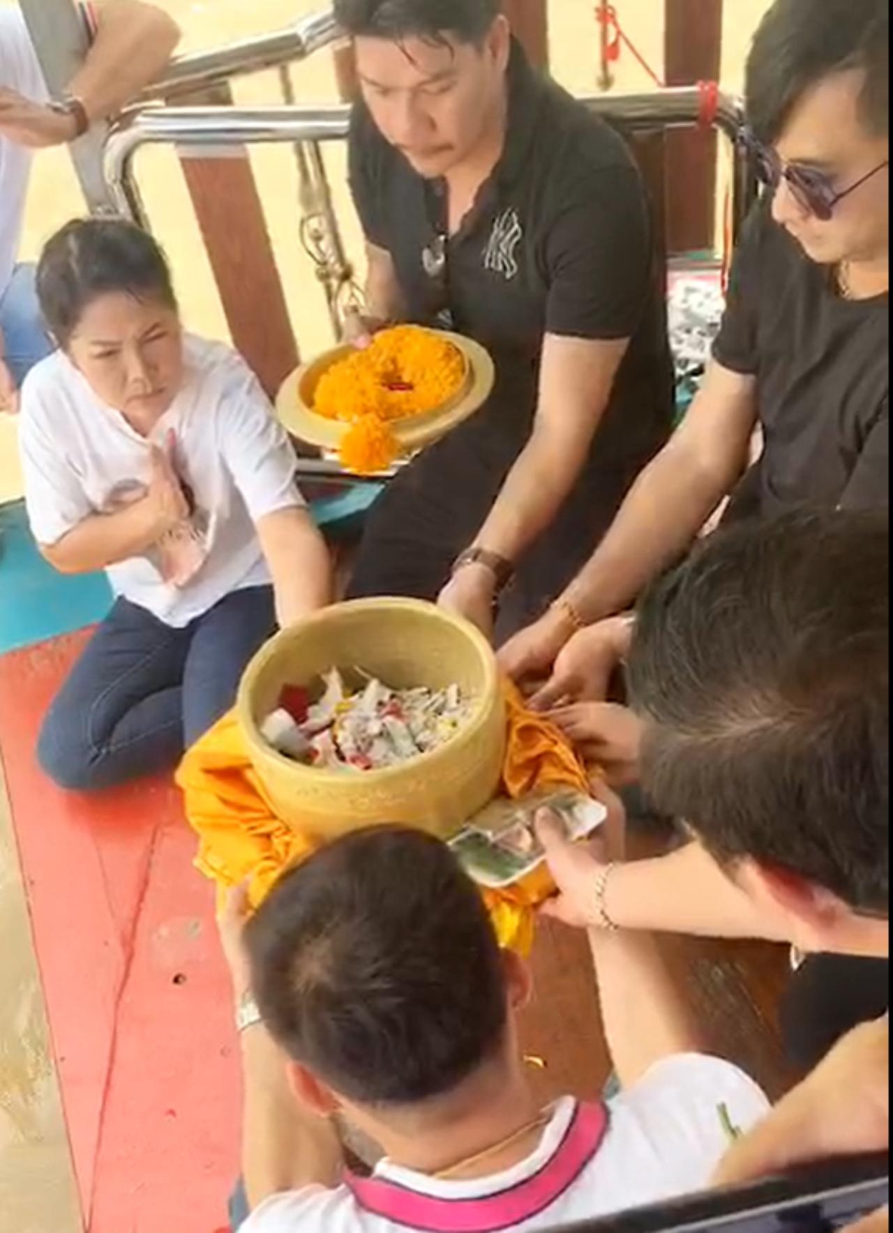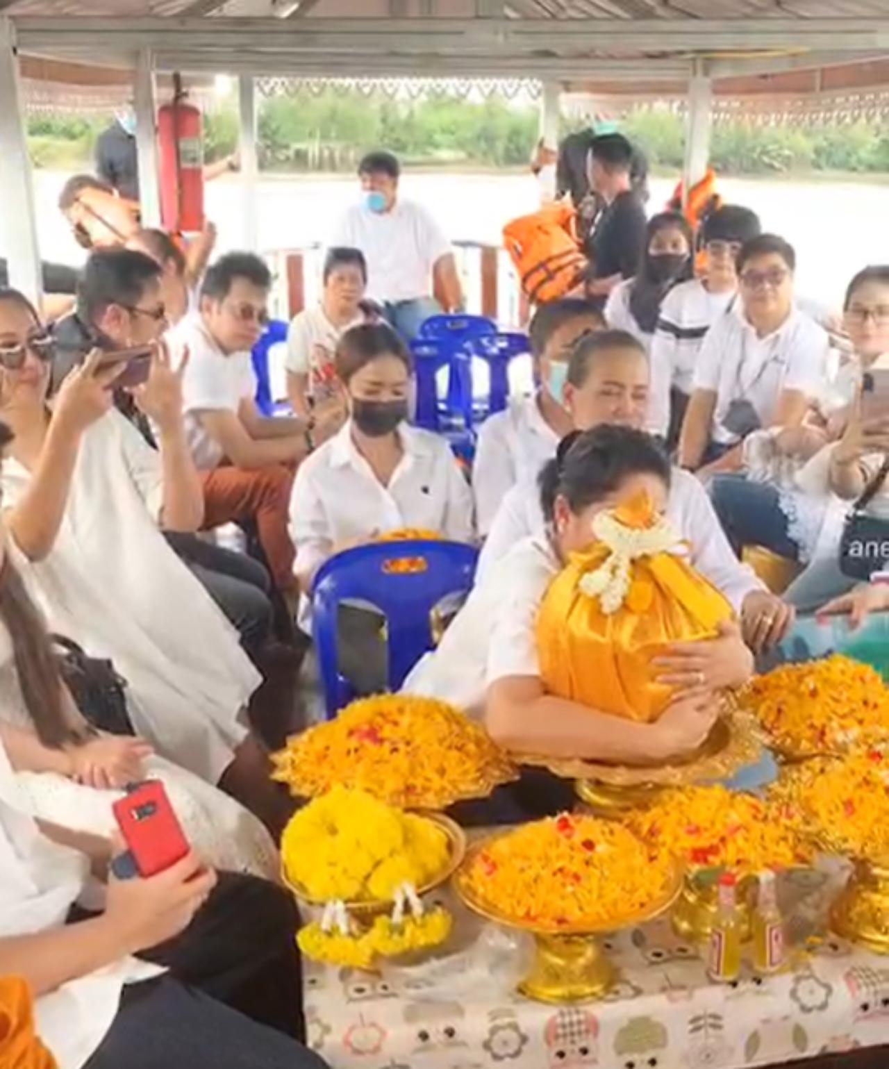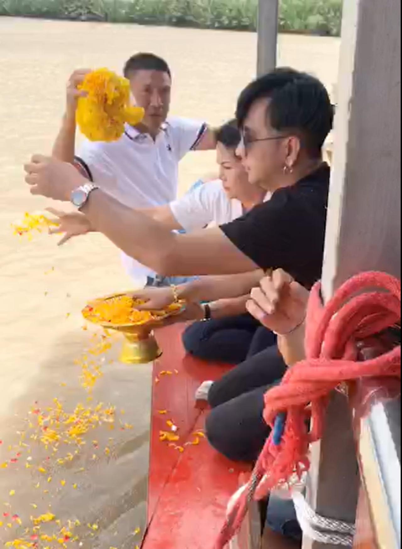 ซึ่งบรรยากาศในระหว่างที่นั่งเรือไปลอยอังคารยังเต็มไปด้วยความโศกเศร้า ซึ่ง แจ๋ว วิภารัตน์ ภรรยาของโรเบิร์ตได้ใส่เสื้อยืดสีขาวมีลายสกรีนรูปคู่กับสามี และตลอดพิธีกรรมยังคอยจับ ลูบ และกอดพานใส่กระดูกของโรเบิร์ตตลอดเวลา ก่อนจะทำพิธีลอยอัฐิ โปรยดอกไม้ และปล่อยปลา เป็นการสุดท้าย