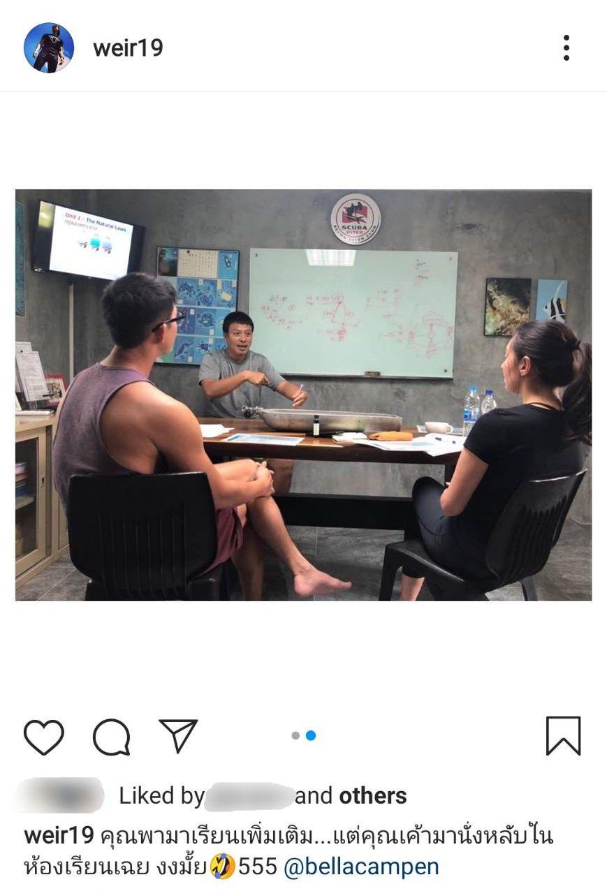 ล่าสุดมีโมเมนต์ฮาๆ น่ารักๆ ให้เห็นอีกแล้ว เมื่อเวียร์โพสต์ภาพแกล้งเบลล่า โดยเป็นภาพที่ เวียร์-เบลล่า ไปเรียนเพิ่มเติม แต่เบลล่าหลับตาเหมือนนั่งหลับ พร้อมทั้งเขียนข้อความว่า “คุณพามาเรียนเพิ่มเติม...แต่คุณเค้ามานั่งหลับในห้องเรียนเฉย งงมั้ย 555 @bellacampen”