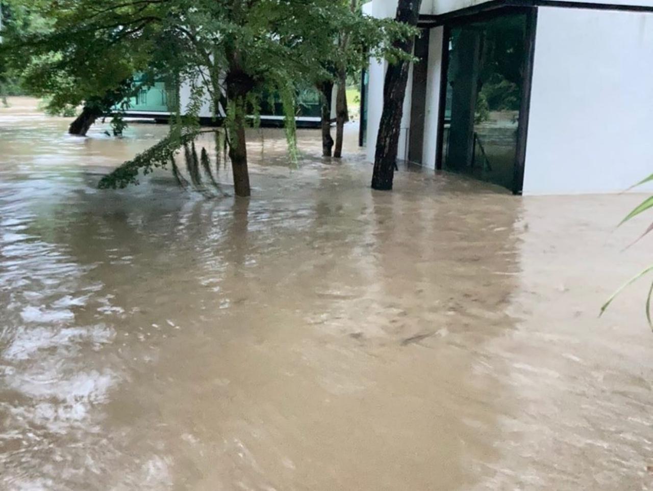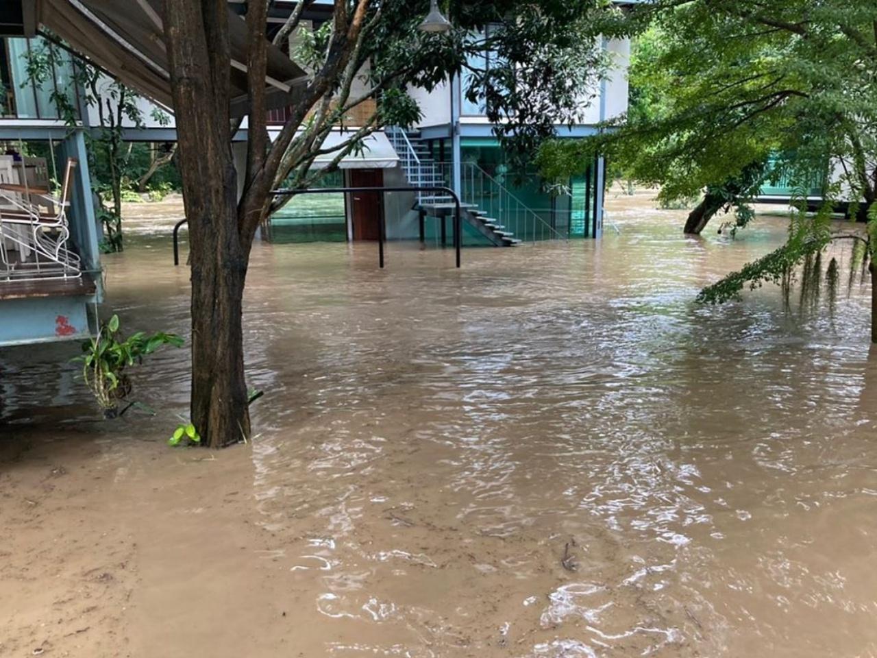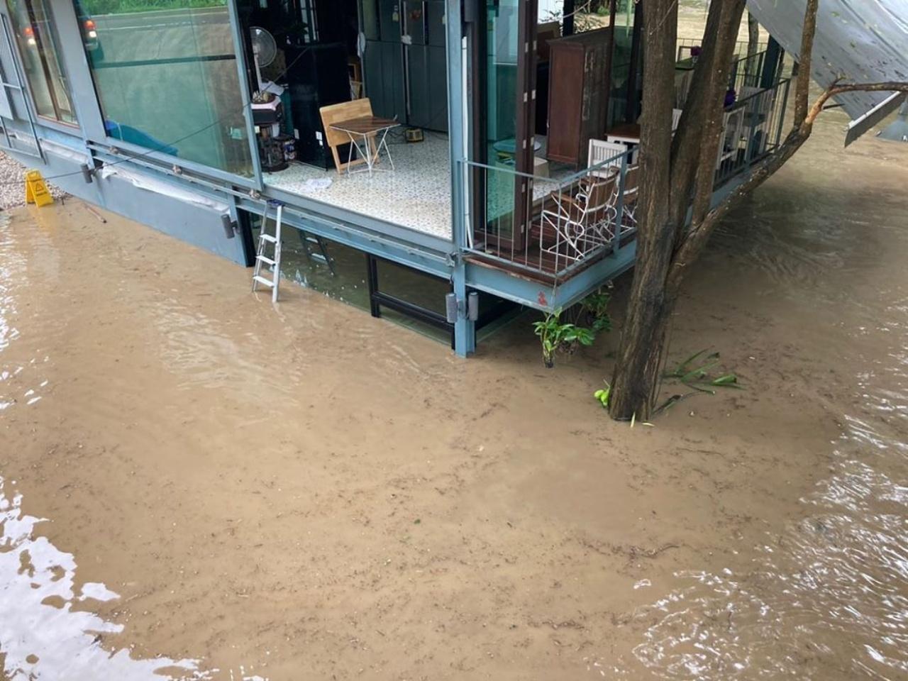 ต่อมาเกินต้านมากจริงๆ ด้วยความแรงของน้ำและฝนที่ตกอย่างต่อเนื่อง ทำให้น้ำป่าได้ไหลทะลักท่วมจนถึงขอบของห้องพักแต่ละห้อง ที่ในอดีตเคยสวยงาม แต่มาตอนนี้ไม่สามารถทำอะไรได้ นอกจากนั่งดูระดับน้ำที่ไต่สูงขึ้น เจ้าตัวก็ได้โพสต์ภาพ พร้อมเขียนแคปชั่นอธิบายถึงเหตุการณ์นี้ว่า