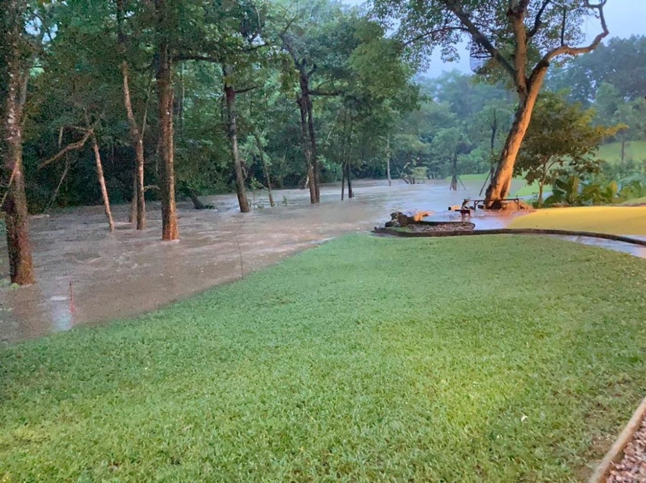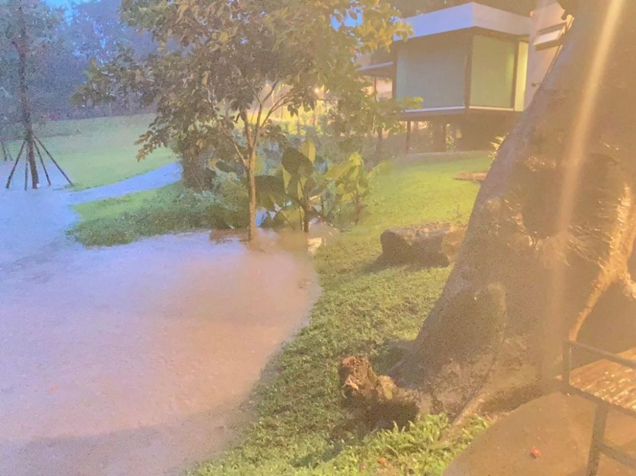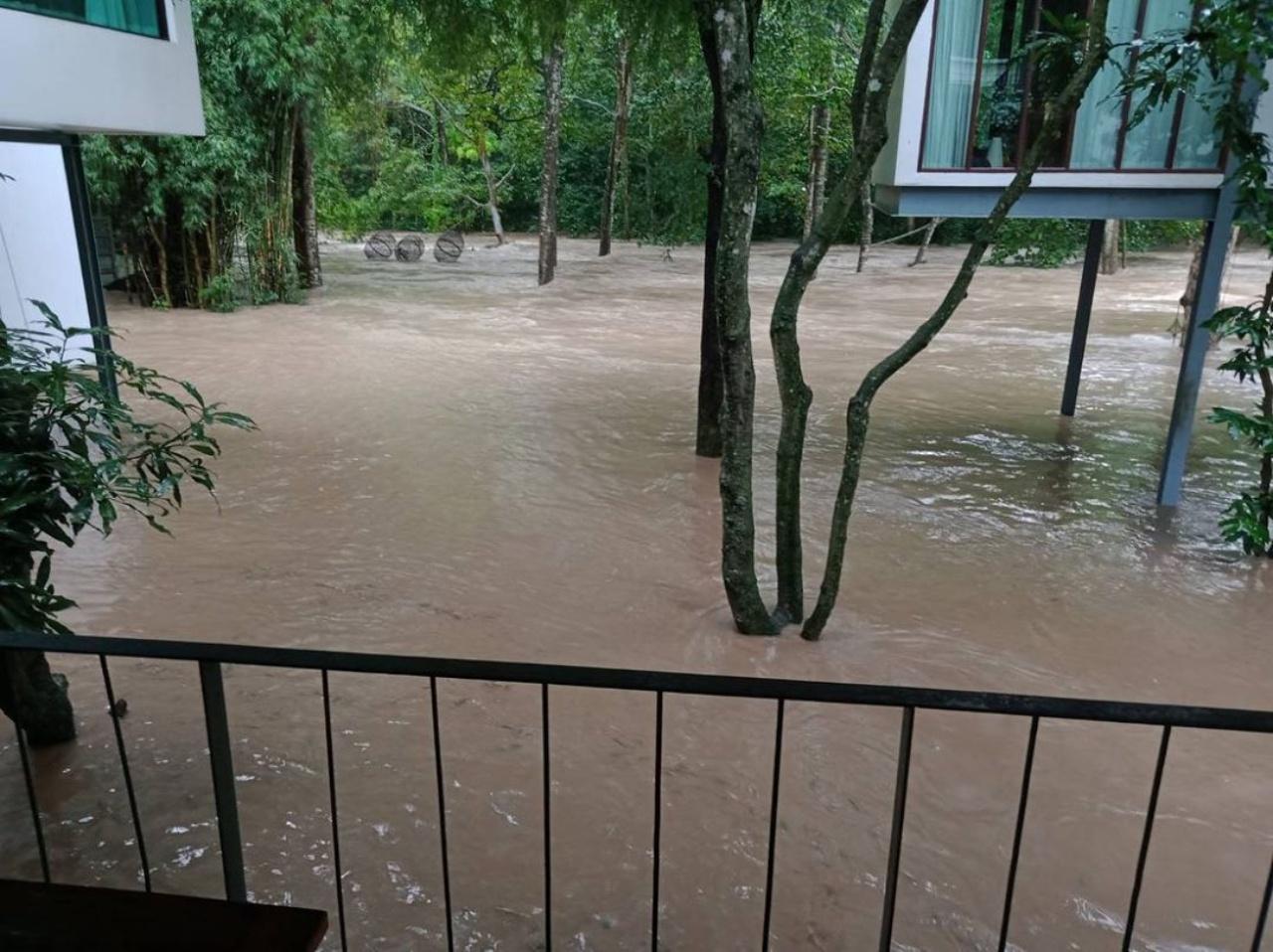 ต่อมาเกินต้านมากจริงๆ ด้วยความแรงของน้ำและฝนที่ตกอย่างต่อเนื่อง ทำให้น้ำป่าได้ไหลทะลักท่วมจนถึงขอบของห้องพักแต่ละห้อง ที่ในอดีตเคยสวยงาม แต่มาตอนนี้ไม่สามารถทำอะไรได้ นอกจากนั่งดูระดับน้ำที่ไต่สูงขึ้น เจ้าตัวก็ได้โพสต์ภาพ พร้อมเขียนแคปชั่นอธิบายถึงเหตุการณ์นี้ว่า