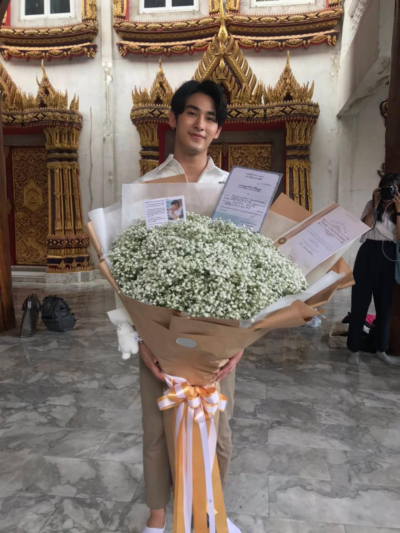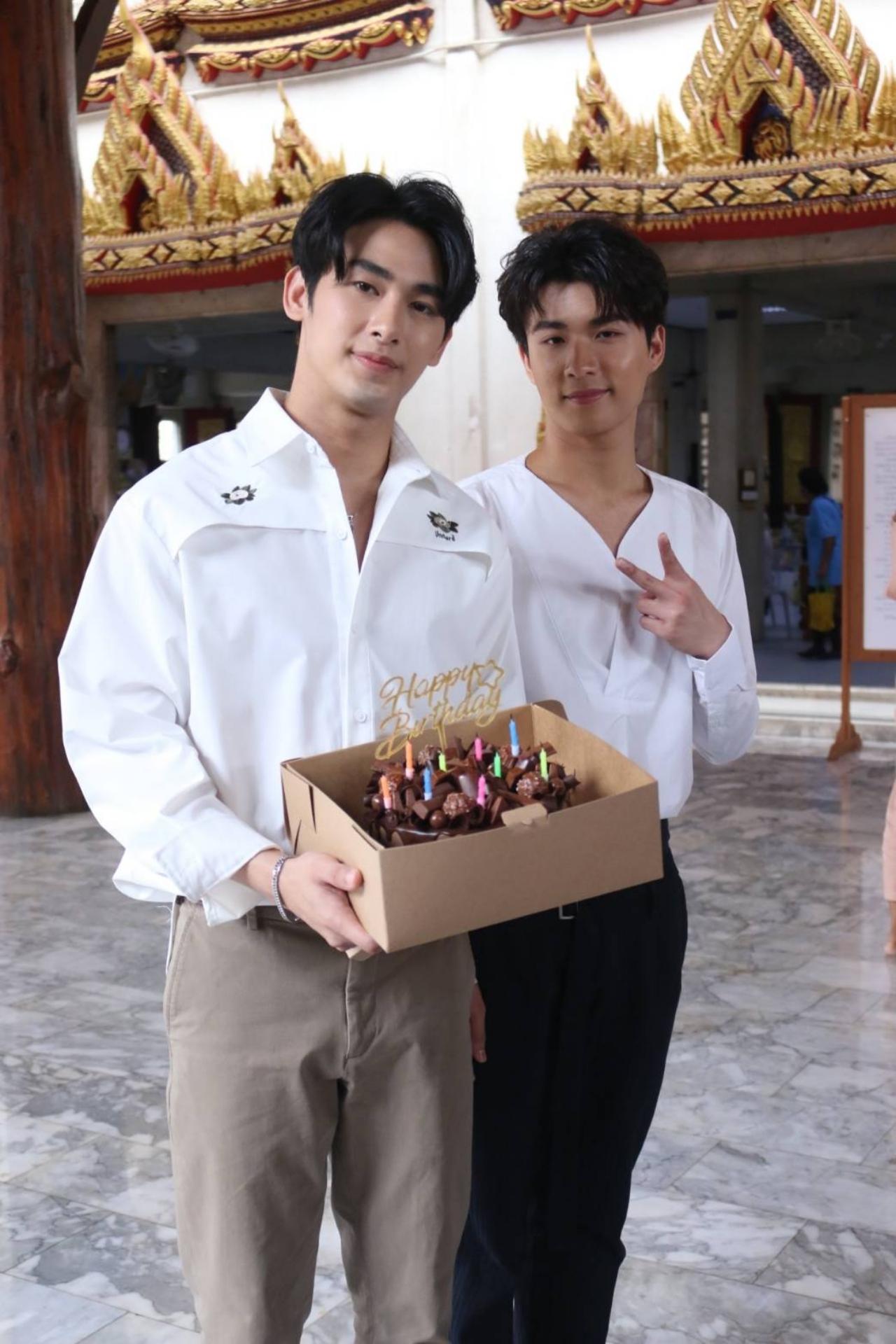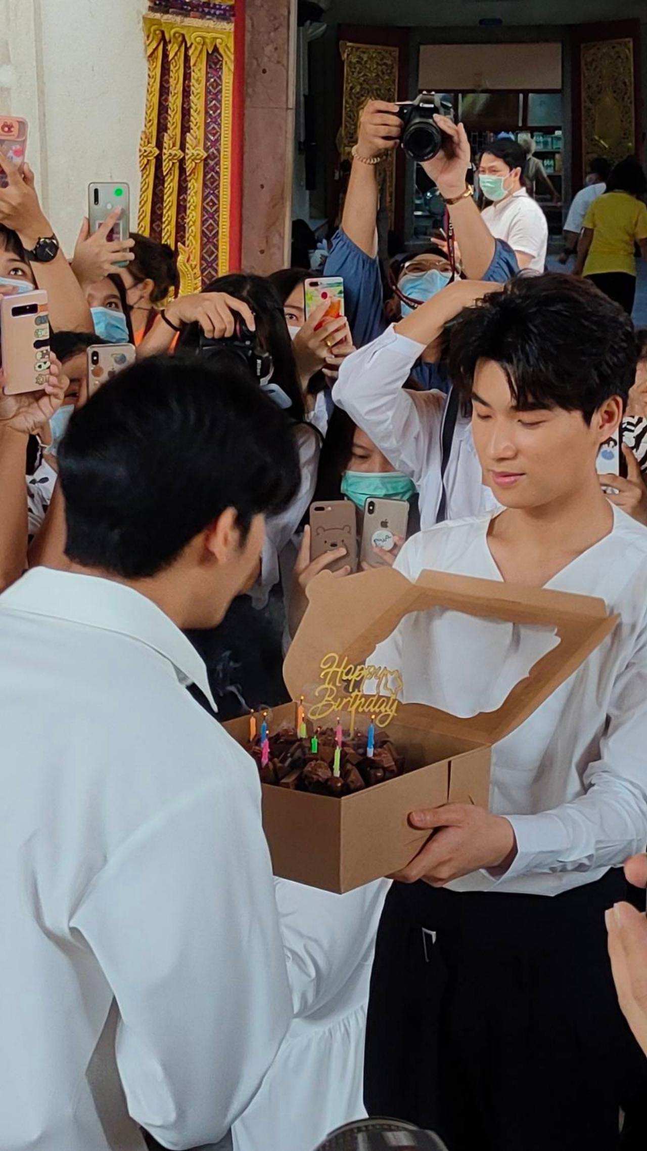 นอกจากนี้ หนุ่มไตเติ้ล ธนธร เสนางคนิกร คู่จิ้น ยังแอบยกเค้กเซอร์ไพร์ ไฮด์หลังจากไหว้พระเสร็จ ทำเอาแฟนคลับถึงกับลั่นชัตเตอร์ถ่ายรูปกันรัวๆ แถมหนุ่ม มิว ศุภศิษฏ์ จงชีวีวัฒน์ รุ่นพี่ TharnType The Series ส่งกระเช้าดอกไม้มาร่วมแสดงความยินดีอีกด้วย