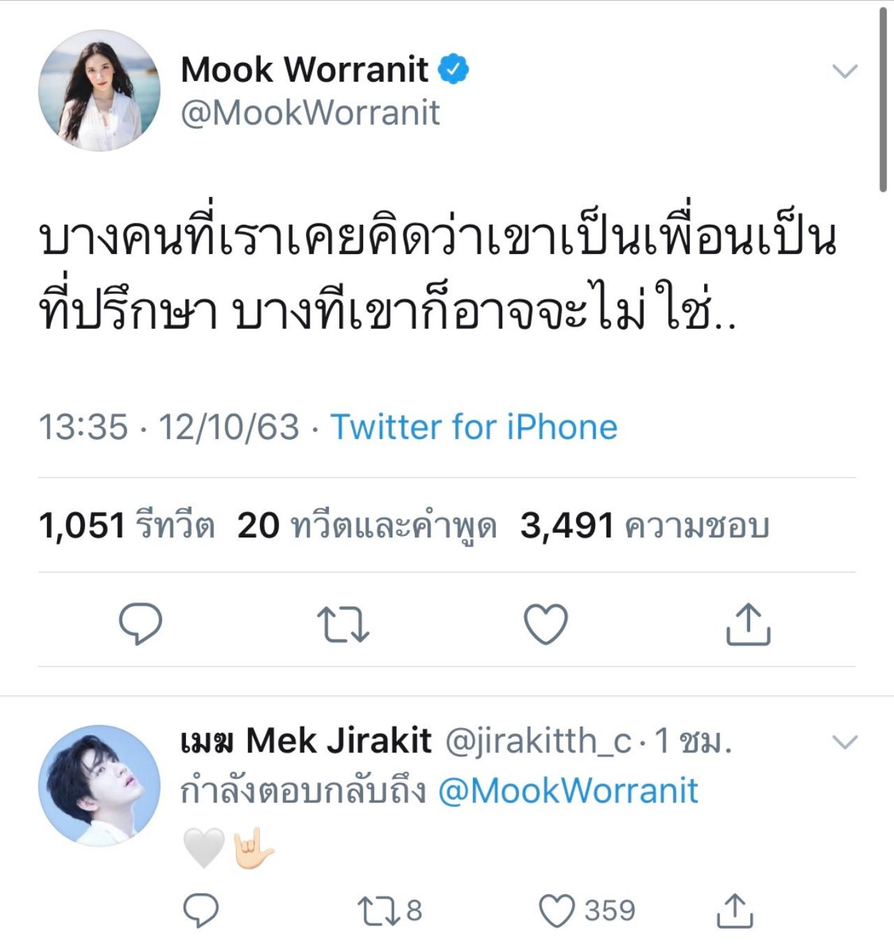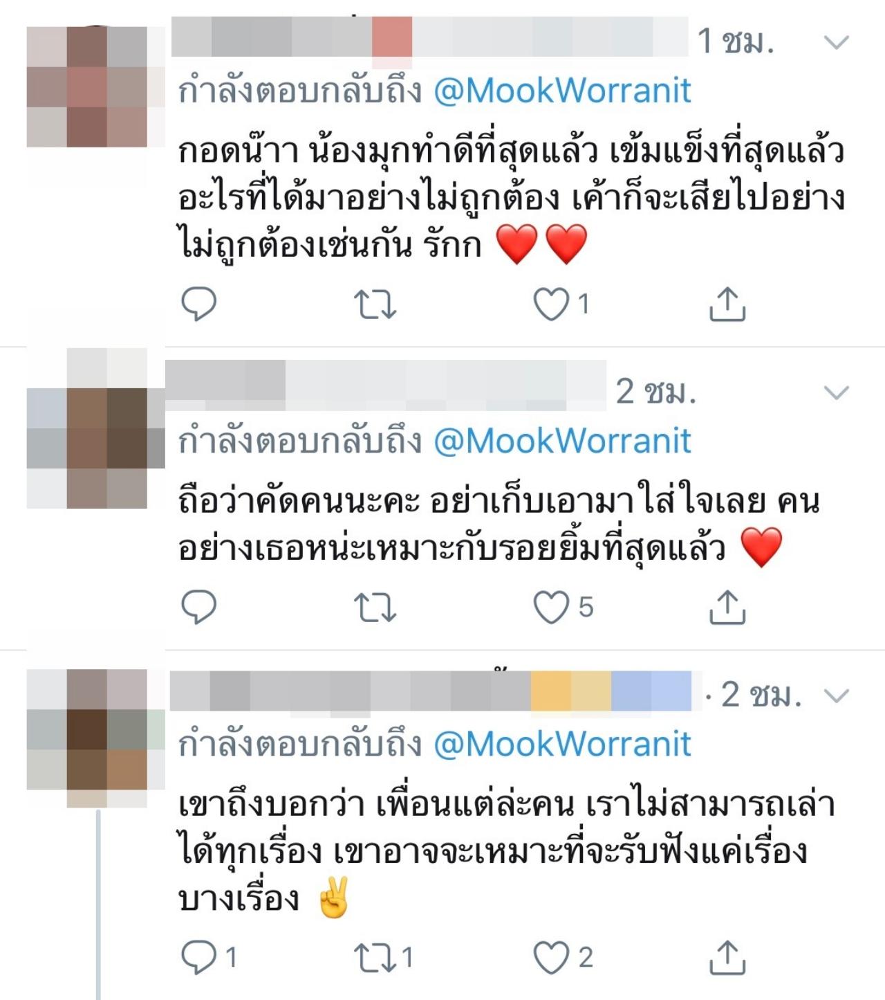 หลังจากที่มุกทวีตข้อความดังกล่าวไป งานนี้ เมฆ จิรกิตติ์ พี่ชายของนางเอกสาวก็ได้มาคอมเมนต์ส่งกำลังใจ รวมถึงชาวเน็ตด้วยเช่นกัน เรื่องนี้จะเกี่ยวข้องหรือเชื่อมโยงอย่างที่ชาวเน็ตสงสัยหรือไม่ คงต้องรอฟังคำตอบจากปากของสาวมุกน่าจะชัวร์ที่สุด