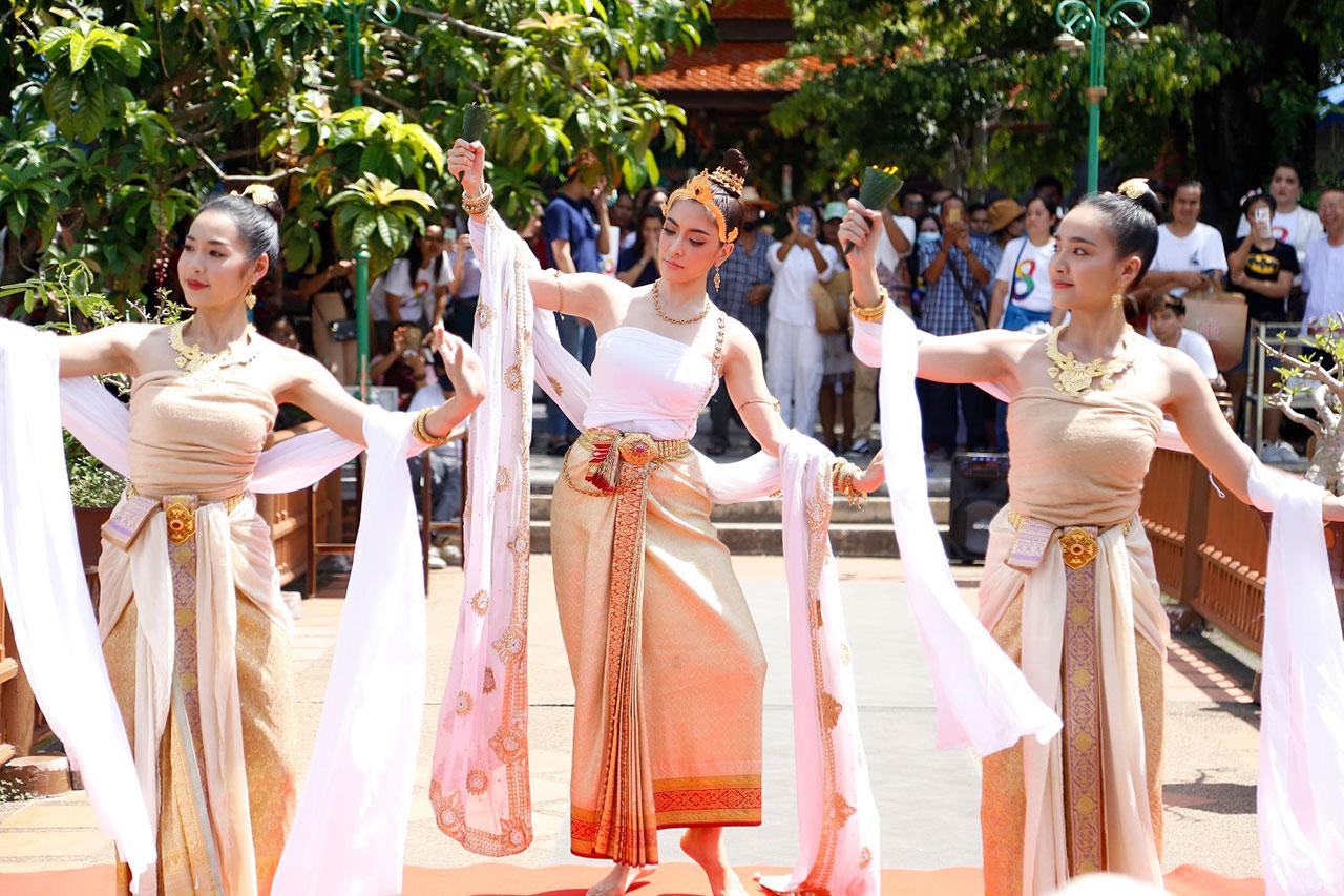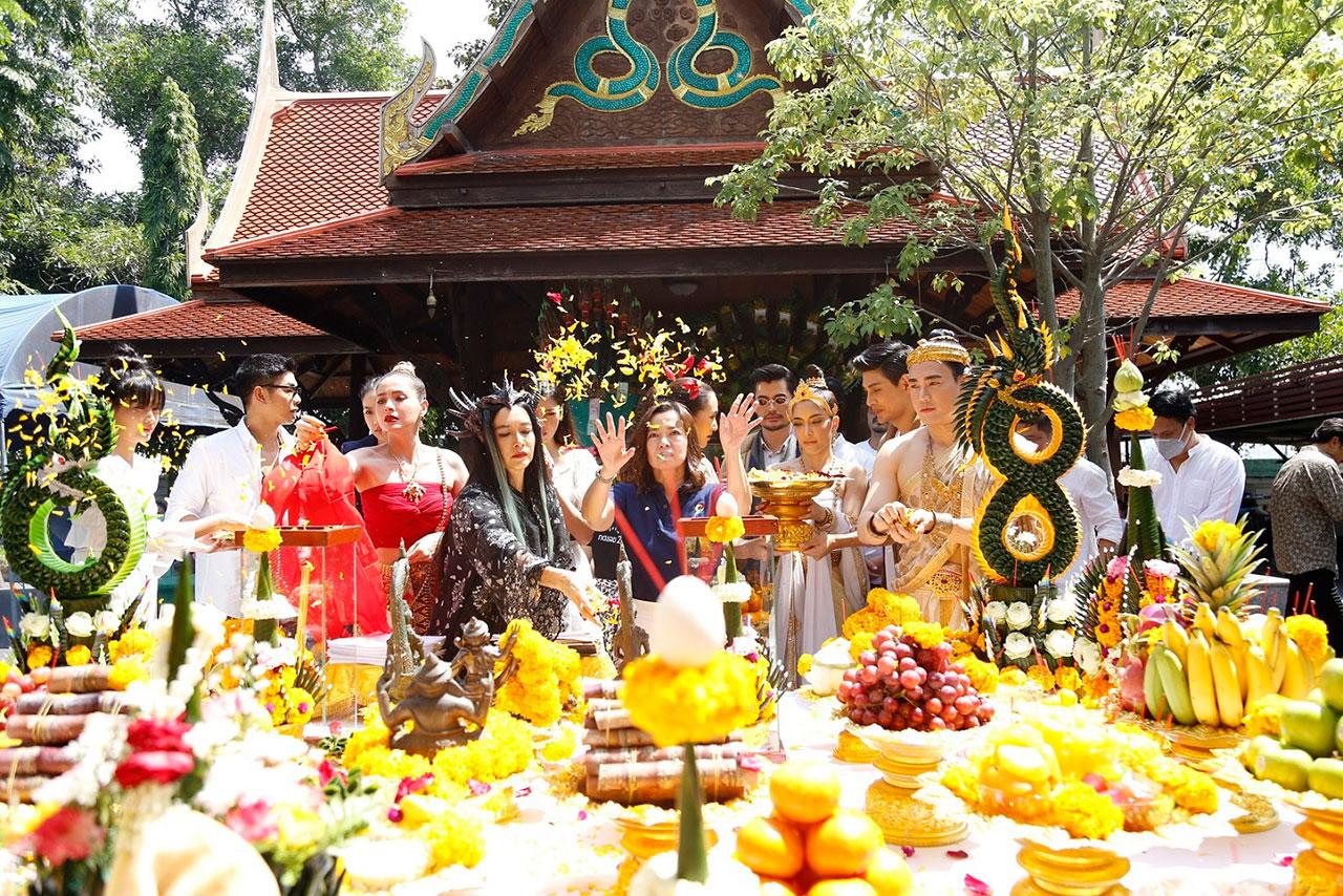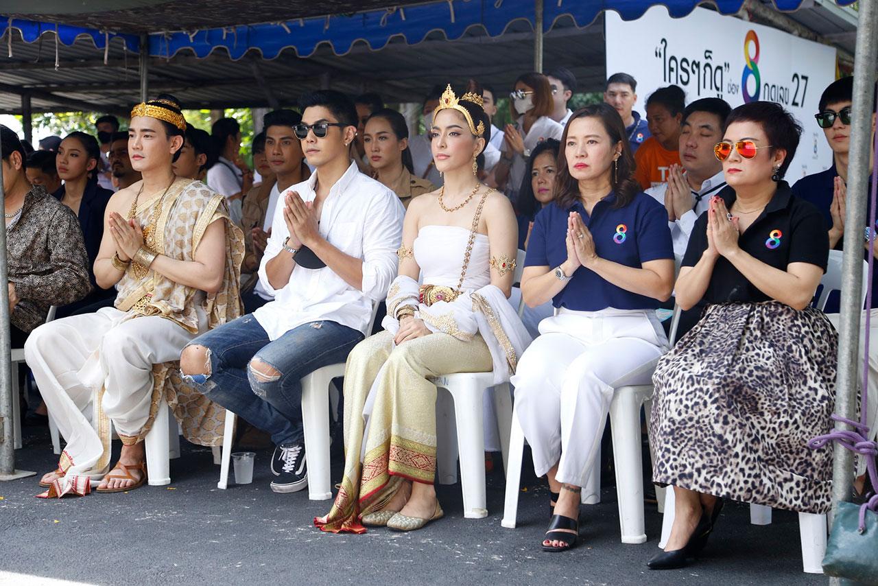 บรรยากาศในงานเรียกได้ว่าคึกคักมากทั้งสื่อมวลชน นักแสดงและผู้คนที่ไปแวะเวียนกราบไหว้ที่วัดแห่งนี้ ถึงเวลาฤกษ์ดีนักแสดงมาในชุดสวยหล่อตามคาแรกเตอร์ตบเท้าเข้าร่วมพิธีบวงสรวง ตั้งใจอธิษฐานจิต เพื่อสิริมงคลแก่ตนเอง และถึงชอตสำคัญที่ทุกคนรอคอย เมื่อนางเอกสาว พิงกี้ มาในชุดไทยสีขาวดิ้นทองสุดสง่า พร้อมโชว์ลีลาฟ้อนรำสุดอ่อนช้อย ในชุดระบำลพบุรี ทำเอาทุกสายตาจับจ้องและเรียกเสียงปรบมือได้เกรียวกราว โดยละคร ขุมทรัพย์ลำโขง เป็นละครที่สนุกเข้มข้นครบรส มีทั้งบู๊ แอ็กชั่น แฟนตาซี แถมซีจีจัดเต็ม