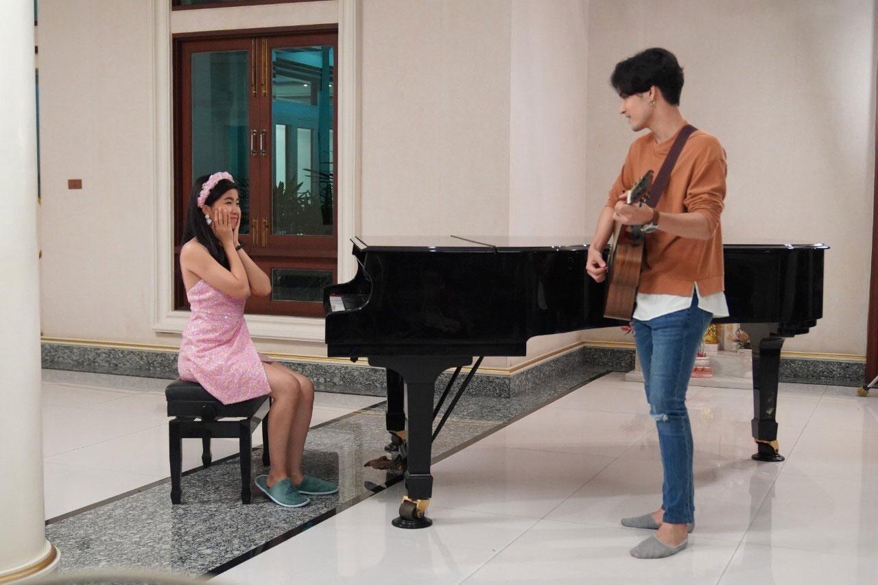 “ตื่นเต้นสิครับ (หัวเราะ) มันคือ การแสดงเราต้องเต็มที่กับทุกบทที่เราได้รับ เขาหอมมาเราก็ต้องดีใจ พูดให้หนุ่มๆ ของ ก้อย อิจฉา (ยิ้มมุมปากเล็กๆ) ส่วนในฉากนี้ ผมอินสุดๆ เลยครับ ไม่ใช่เพราะถูกหอมนะครับ แต่เพราะได้โซโล่กีตาร์ ซึ่งเป็นเครื่องดนตรีที่ผมชอบมาก พอ พี่ติ๊ก ผู้กำกับบอกว่า เรามีต้องเล่นกีตาร์นะคะ ผมนี่เฮเลย เลยอยากให้ทุกคนรอฟังกันนะครับ ในละคร "บ้านสาวโสด" วันอังคารที่ 20 ตุลาคมนี้ เวลา 20.10 น. ทางช่อง GMM25"