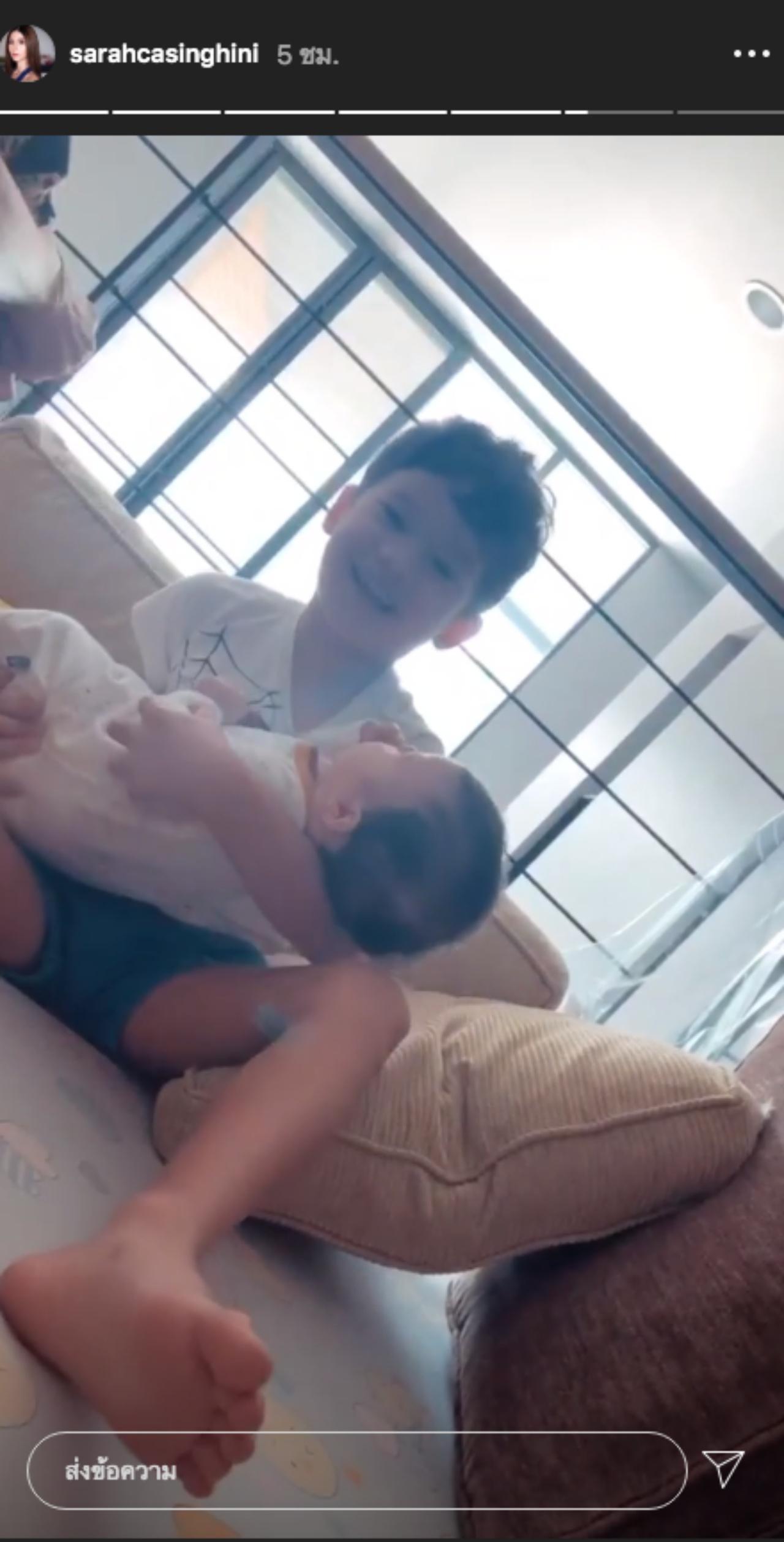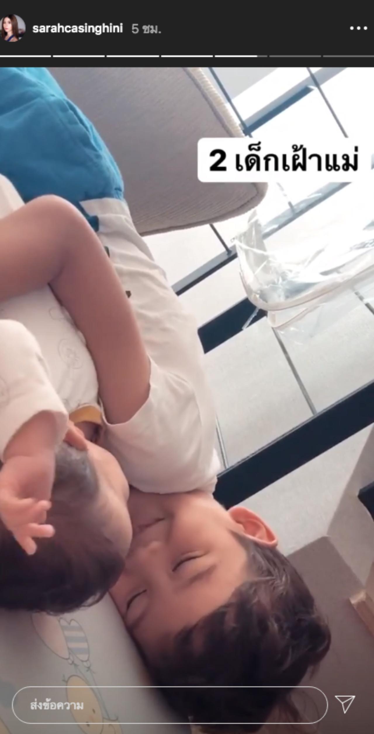 กำลังอยู่ในวัยน่ารักเลยทีเดียว สำหรับ น้องเอมมิลี่ วัย 2 เดือน ลูกสาวของ ซาร่า คาซิงกินี โดย ซาร่า ได้โพสต์คลิปลงไอจีสตอรี่ เป็นคลิปที่ พี่แม็กซ์เวลล์ กำลังช่วยแม่เลี้ยงน้อง หัดอุ้มน้อง เป็นภาพที่น่ารักมาก พร้อมระบุว่า "2 เด็กเฝ้าแม่" ซึ่งพี่กับน้องกำลังนอนกอดกัน คุยกัน พี่แม็กซ์เวลล์ได้บอกแม่ว่า น้องยิ้มให้