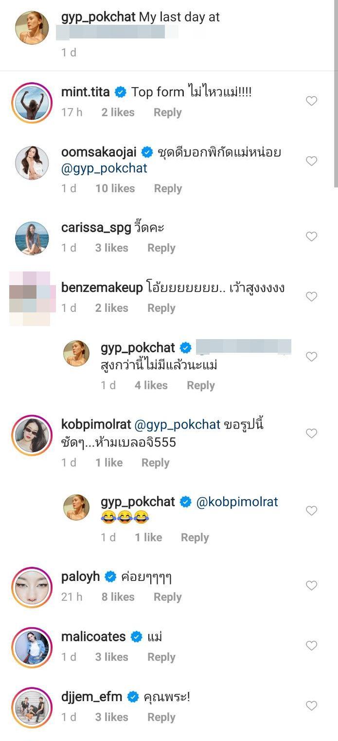 โดย จิ๊บ ปกฉัตร โพสต์ภาพตัวเองในชุดว่ายน้ำเว้าสูงปรี๊ดมากๆ แม้ภาพจะเบลอ แต่ก็ไม่สามารถซ่อนความแซ่บเซ็กซี่ของจิ๊บได้ เผยให้เห็นหุ่นผอมเพรียวบาง ทำเอาคุณแม่ขายาว อ๋อม สกาวใจ บอกว่า “ชุดดีบอกพิกัดแม่หน่อย” รวมไปถึงเพื่อนๆ ในวงการบันเทิง อาทิ คารีสา สปริงเก็ตต์, พลอย หอวัง, มะลิ โคทส์, มิ้นท์ มิณฑิตา, ดีเจเจ็ม ณัฏฐ์ปวินท์ ฯลฯ ต่างคอมเมนต์แซวรัวๆ
