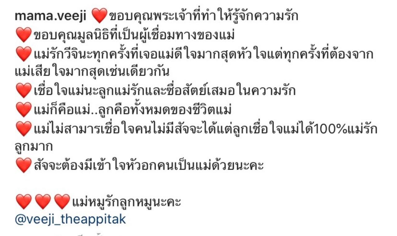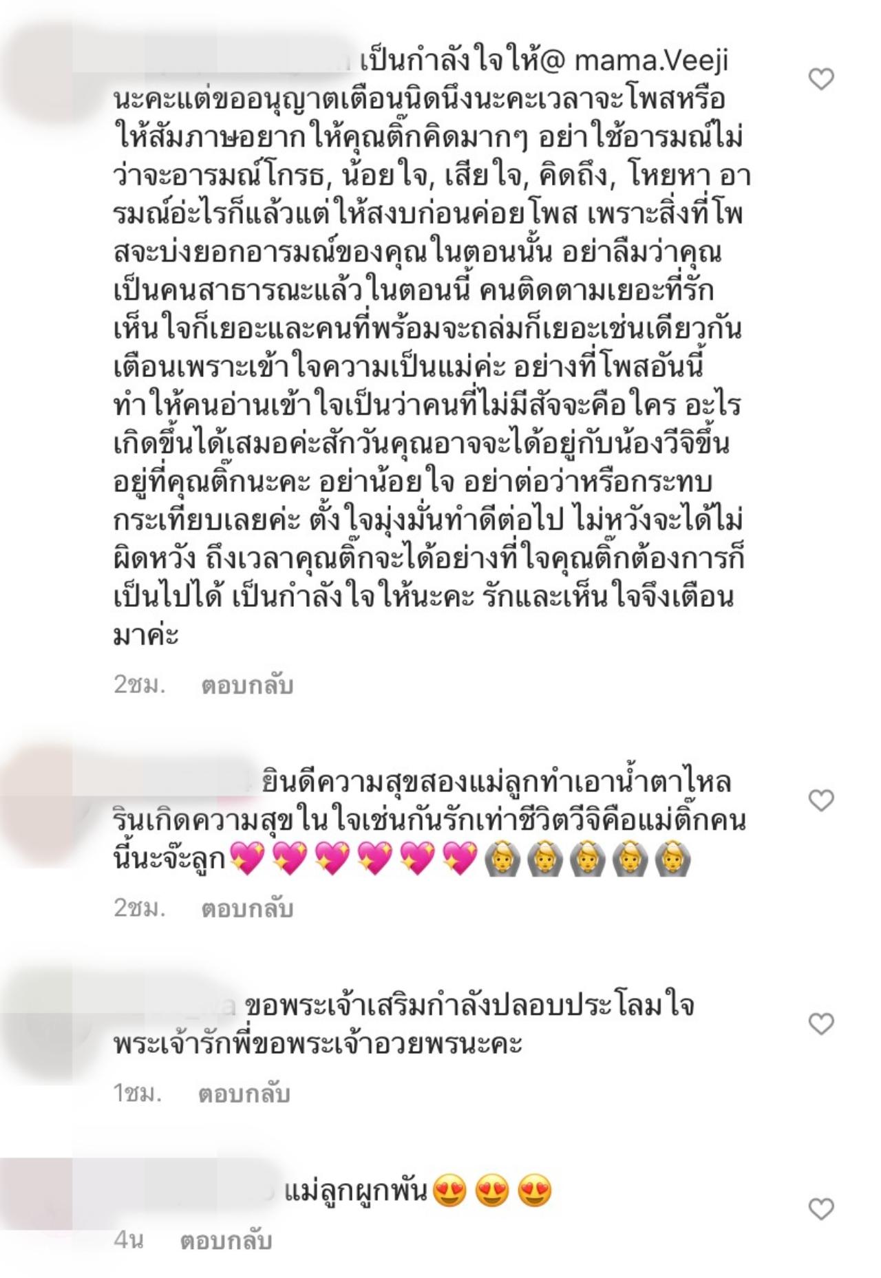 เตือนเพราะเข้าใจความเป็นแม่ค่ะ อย่างที่โพสต์อันนี้ ทำให้คนอ่านเข้าใจเป็นว่าคนที่ไม่มีสัจจะคือใคร อะไรเกิดขึ้นได้เสมอค่ะ สักวันคุณอาจจะได้อยู่กับน้องวีจิ ขึ้นอยู่ที่คุณติ๊กนะคะ