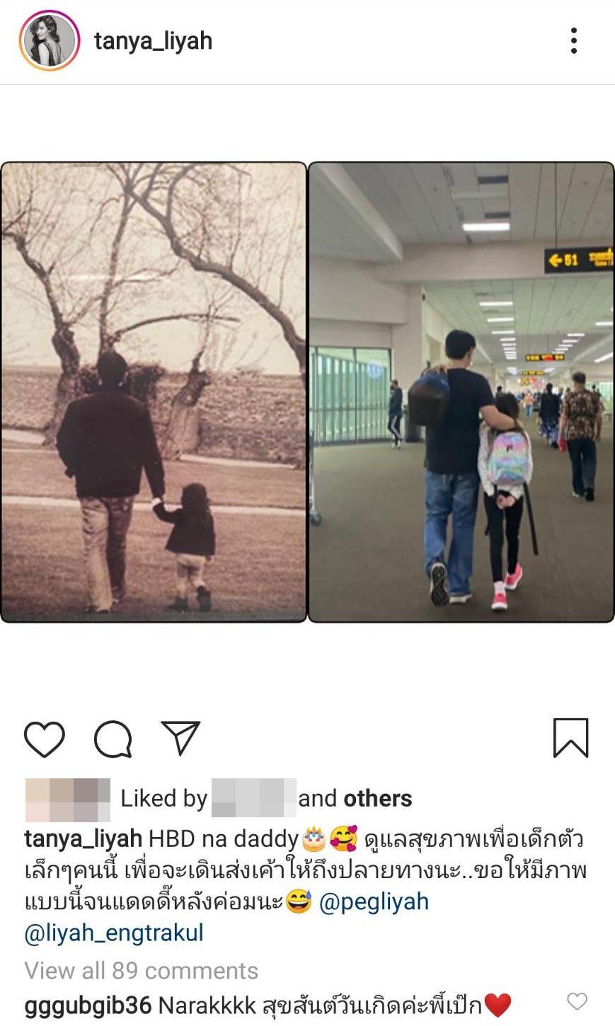 ล่าสุดเมื่อถึงวันคล้ายวันเกิดของหนุ่มเป๊ก งานนี้ศรีภรรยาอย่างธัญญ่าก็ไม่ลืมวันสำคัญในชีวิตของสามี โพสต์ภาพเป๊กและน้องลียาที่เดินไปด้วยกันมาตั้งแต่น้องลียายังเด็กจนเริ่มโตขึ้น พร้อมทั้งเขียนข้อความว่า “HBD na daddy ดูแลสุขภาพเพื่อเด็กตัวเล็กๆ คนนี้ เพื่อจะเดินส่งเค้าให้ถึงปลายทางนะ..ขอให้มีภาพแบบนี้จนแดดดี๊หลังค่อมนะ @pegliyah @liyah_engtrakul”